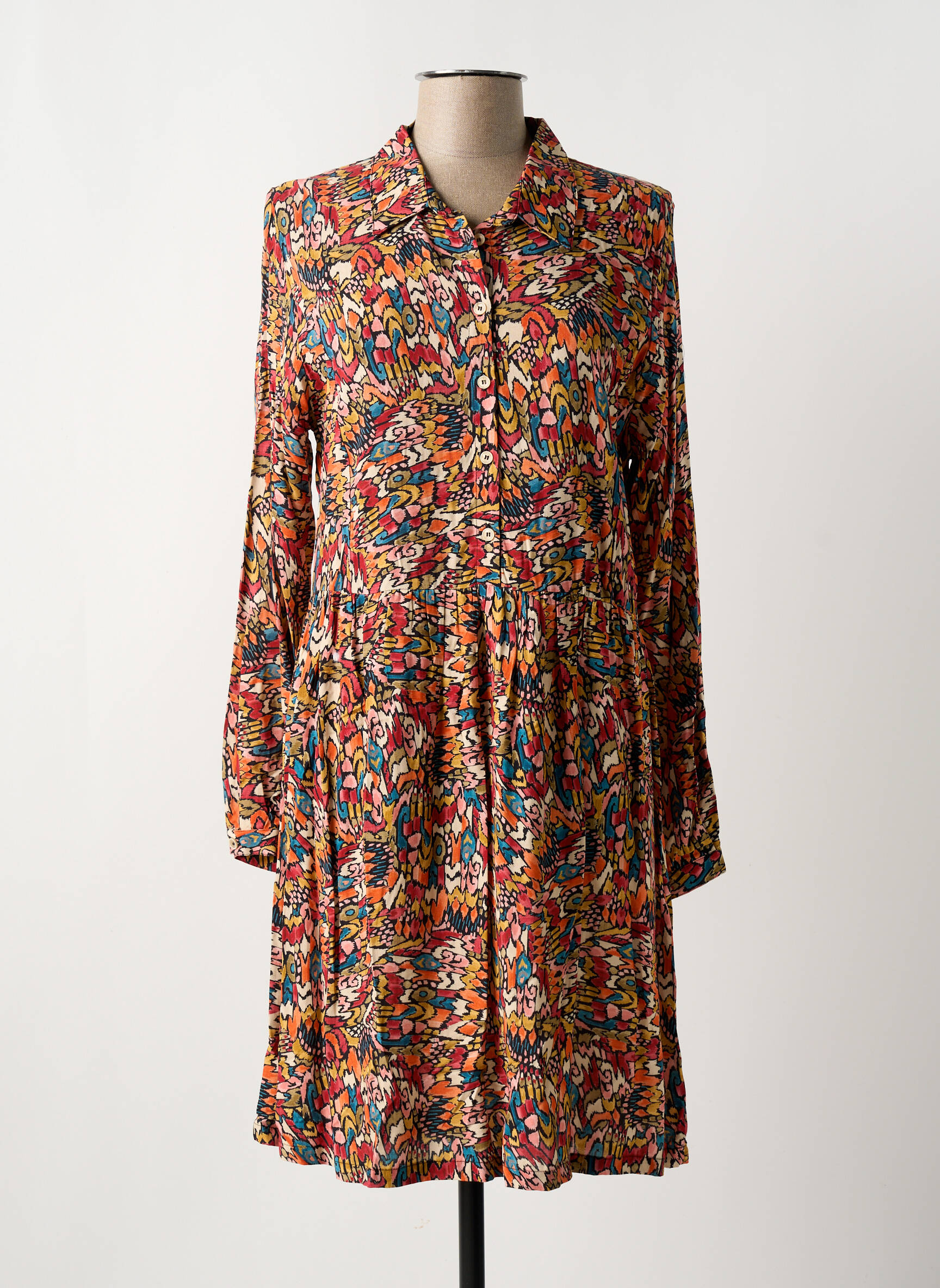 Rochie Midi Diplodocus Portocaliu Mâneci Lungi