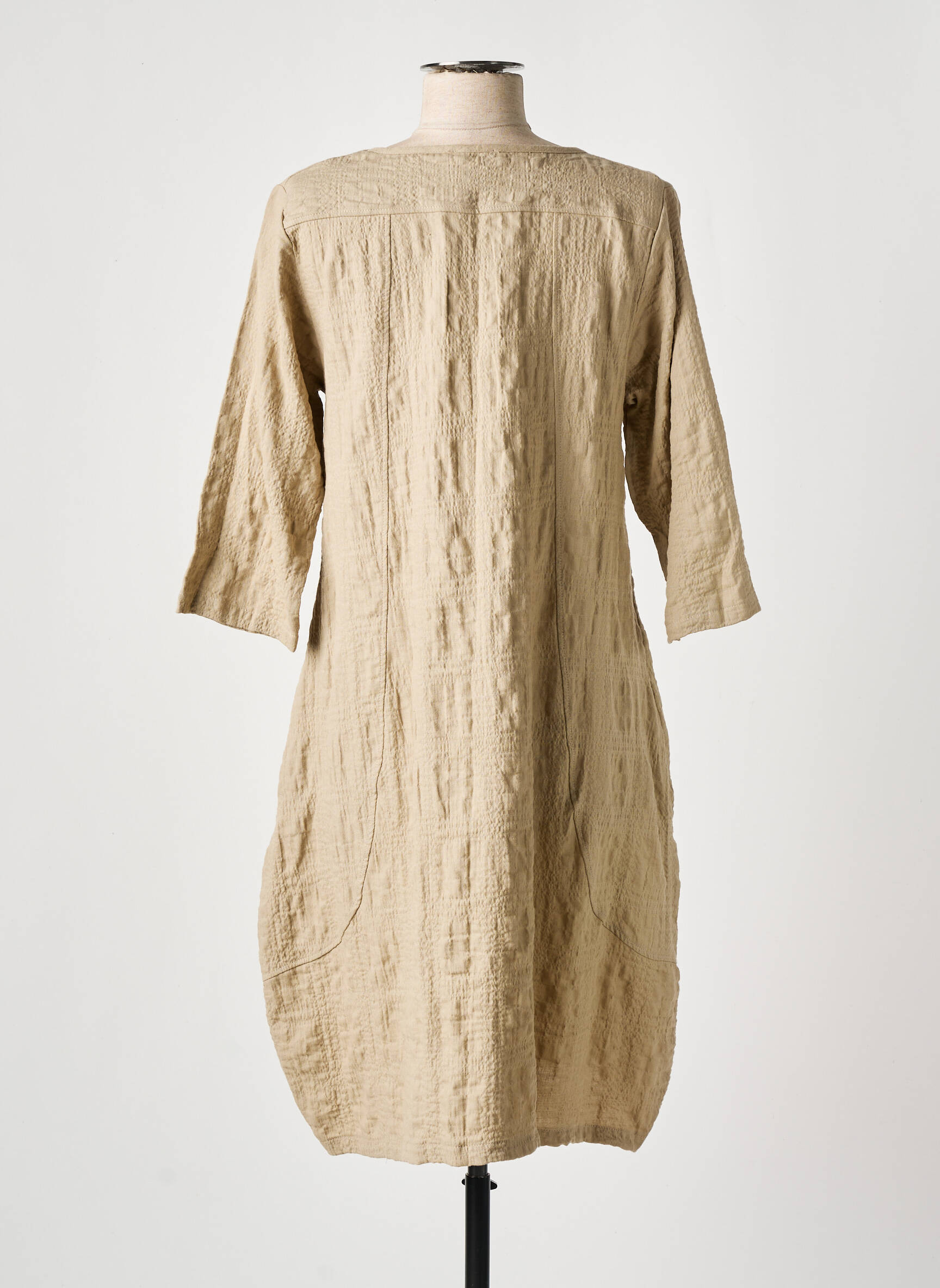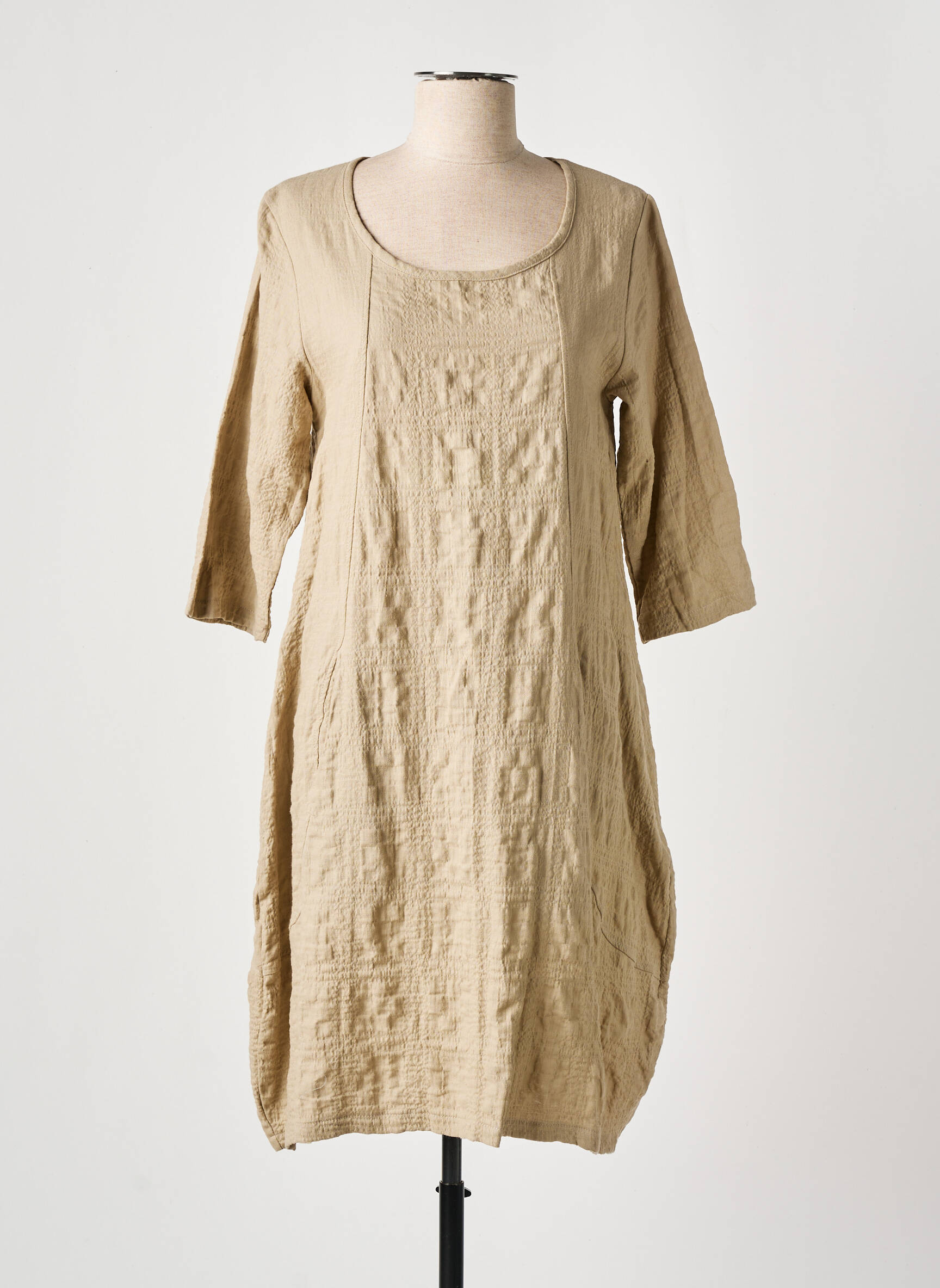Rochie Midi Effet Mer Bej Mâneci 3/4