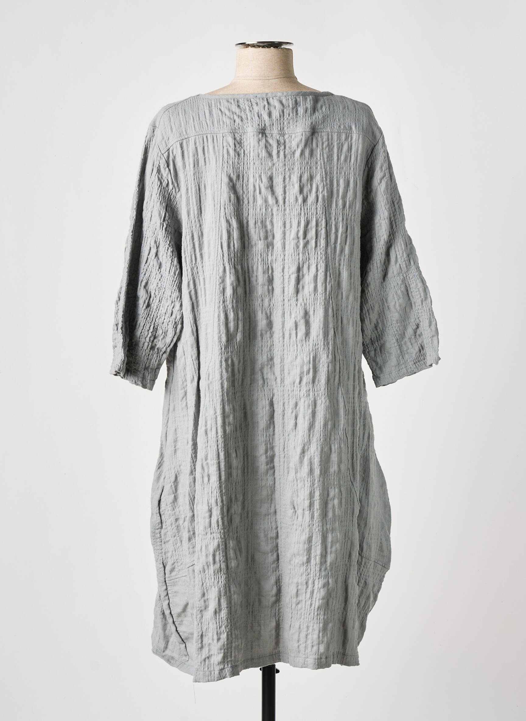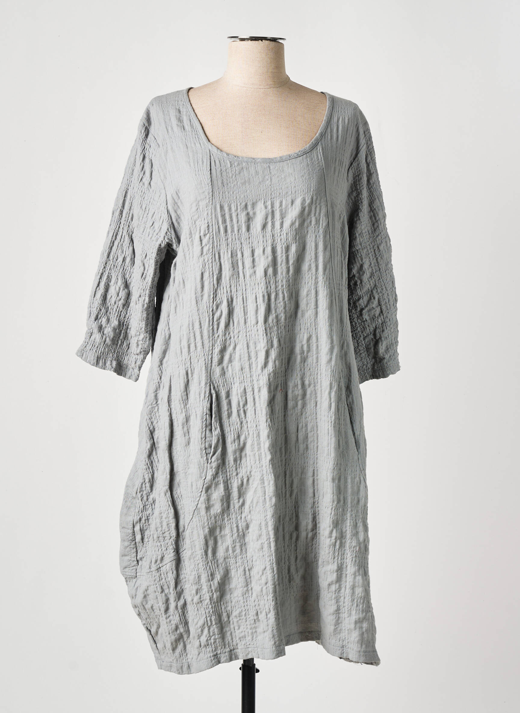 Rochie Midi Effet Mer Gri Mâneci 3/4