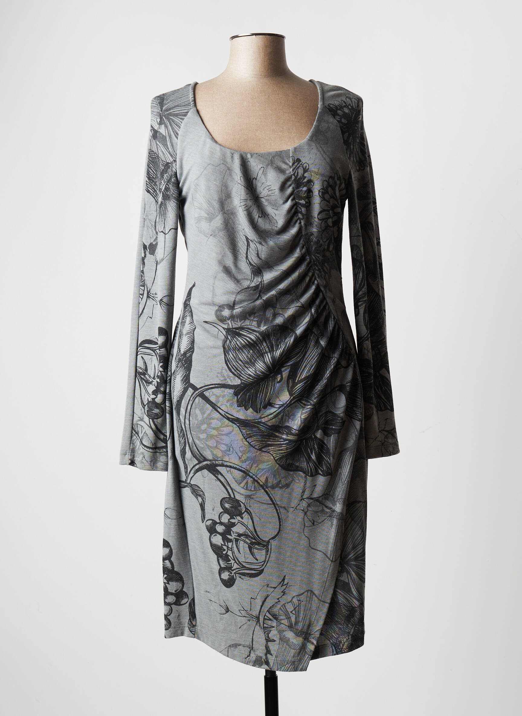 Rochie Midi Eroke Gri Mâneci Lungi
