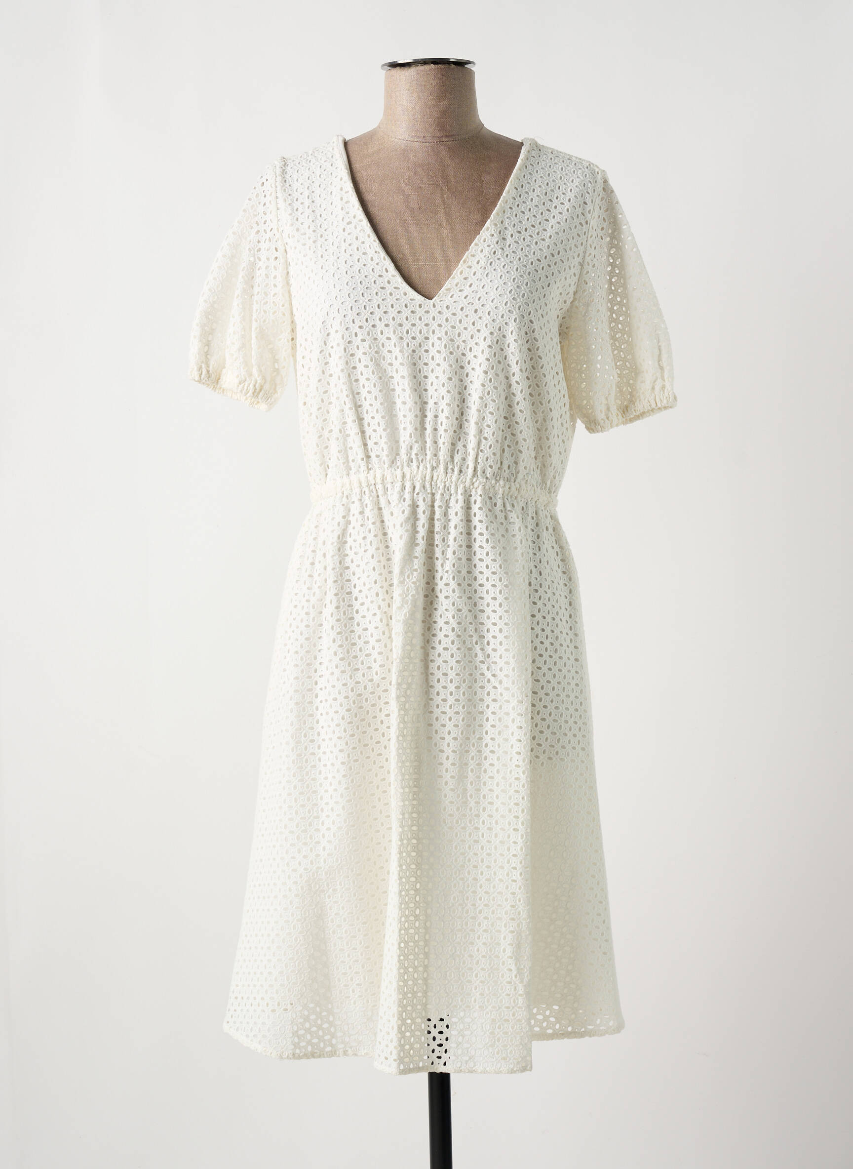 Rochie Midi Esprit Alb Mâneci Scurte