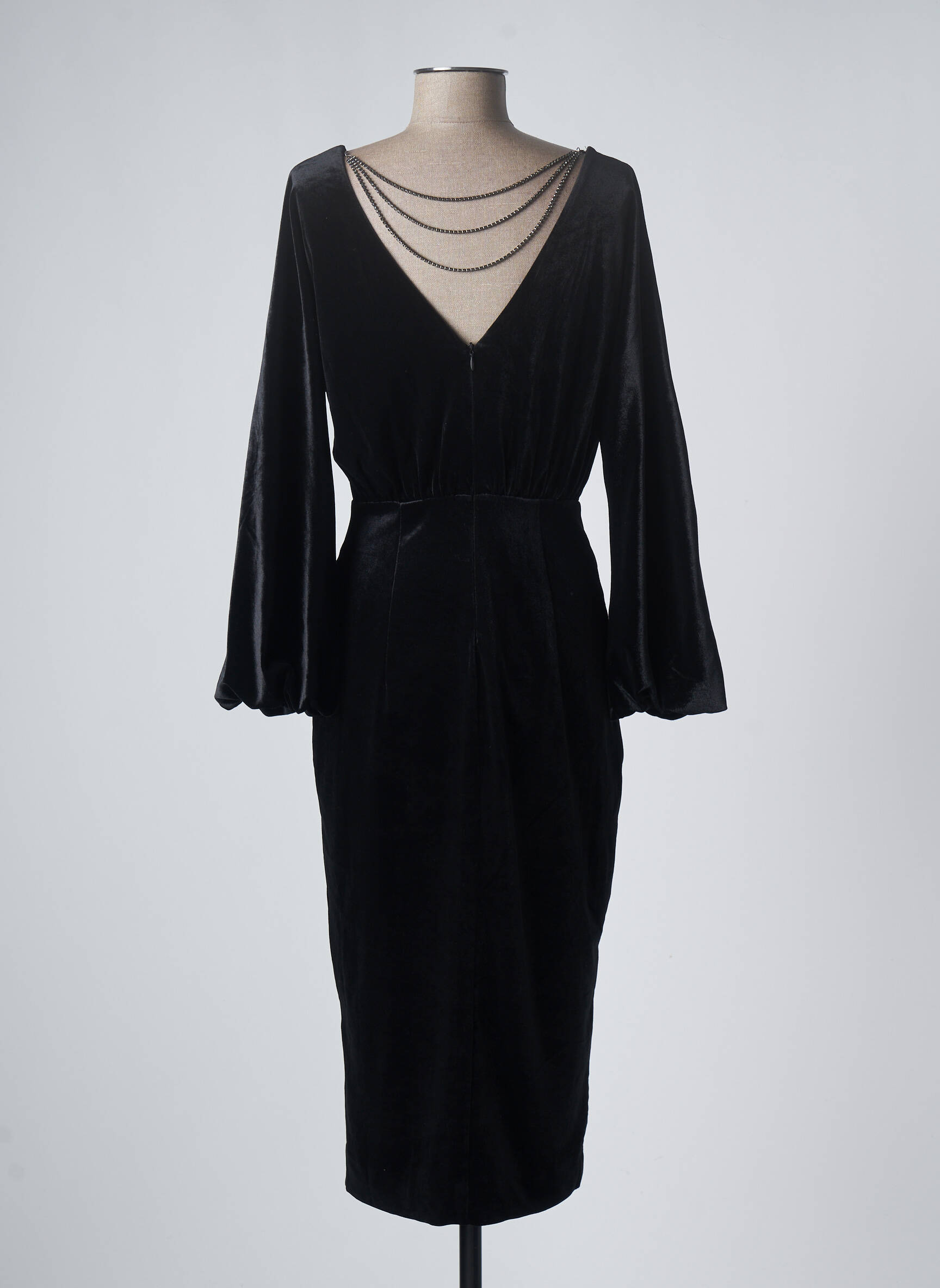 Rochie Midi Esprit Negru Mâneci Lungi