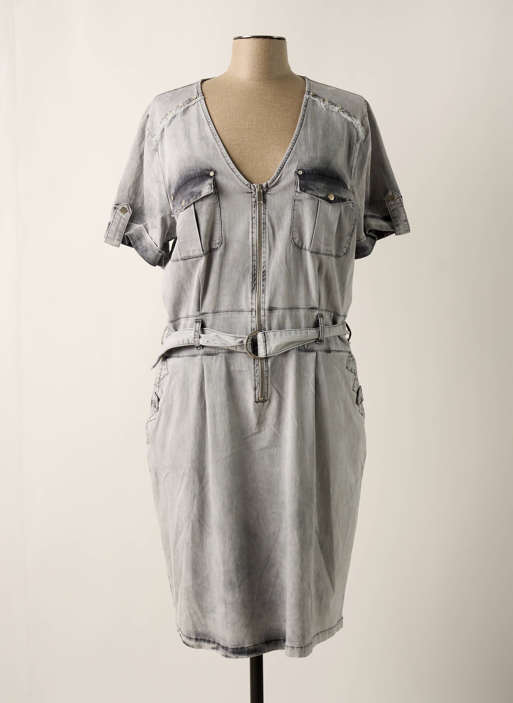 Rochie Midi Eva Kayan Gri Mâneci Scurte