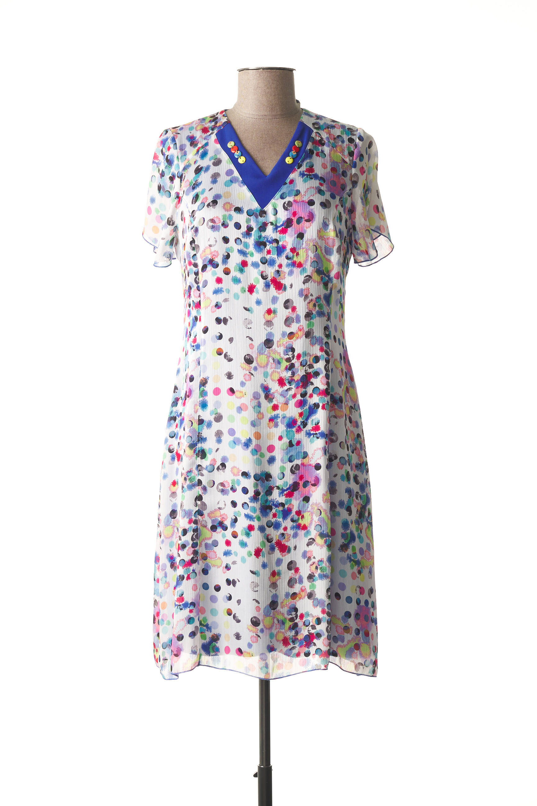 Rochie Midi France Rivoire Alb Mâneci Scurte