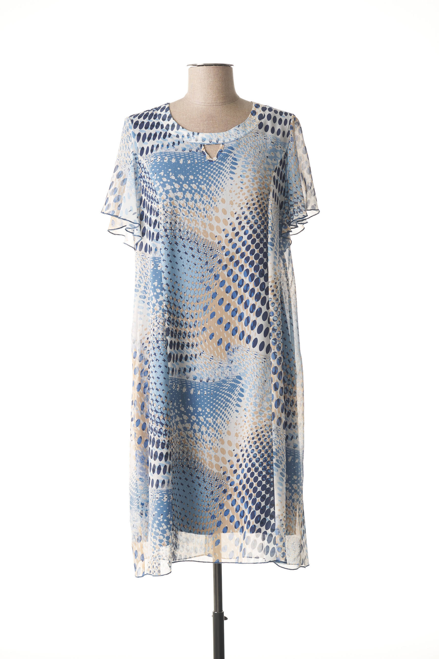 Rochie Midi France Rivoire Albastru Mâneci Scurte