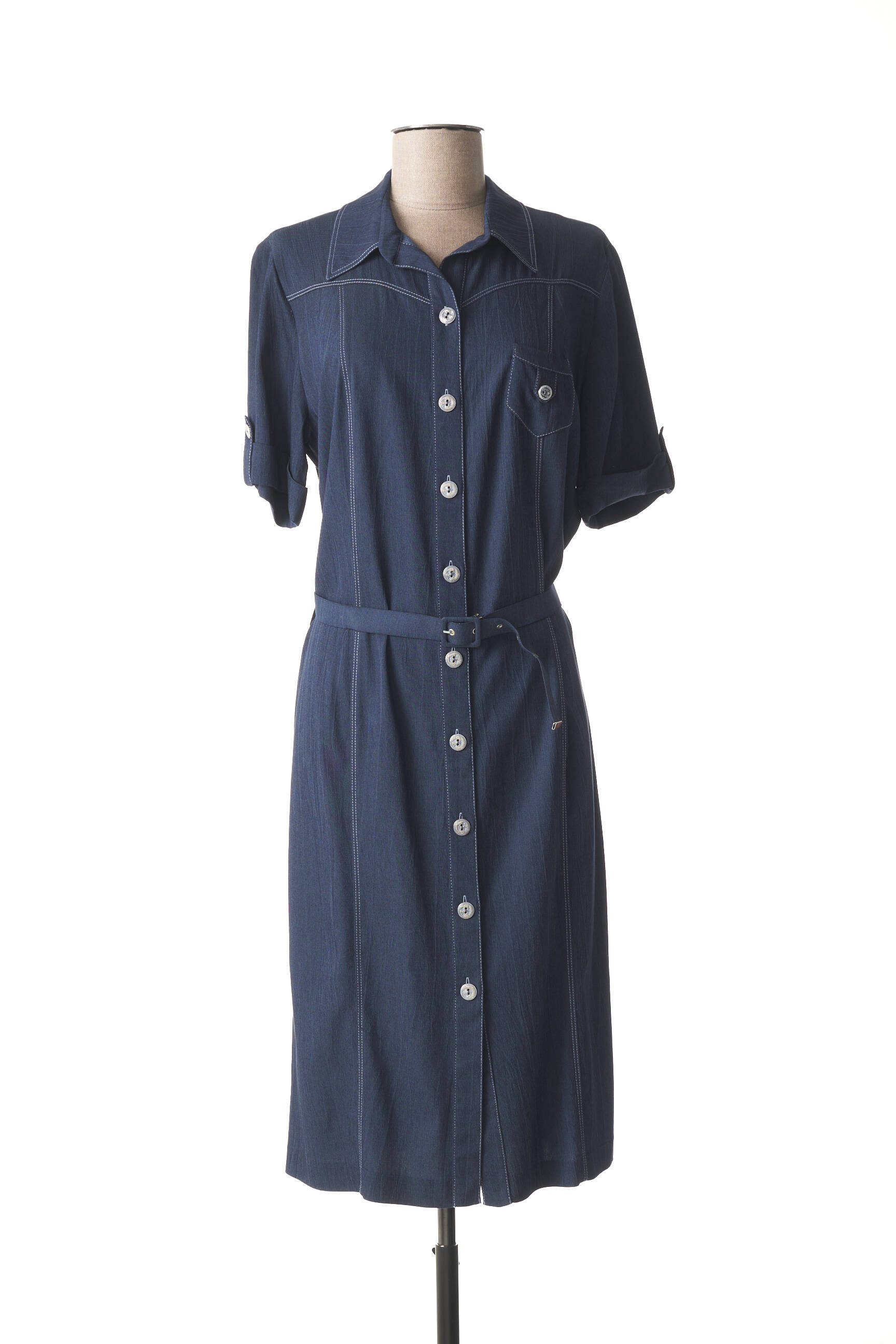 Rochie Midi France Rivoire Albastru Mâneci Scurte