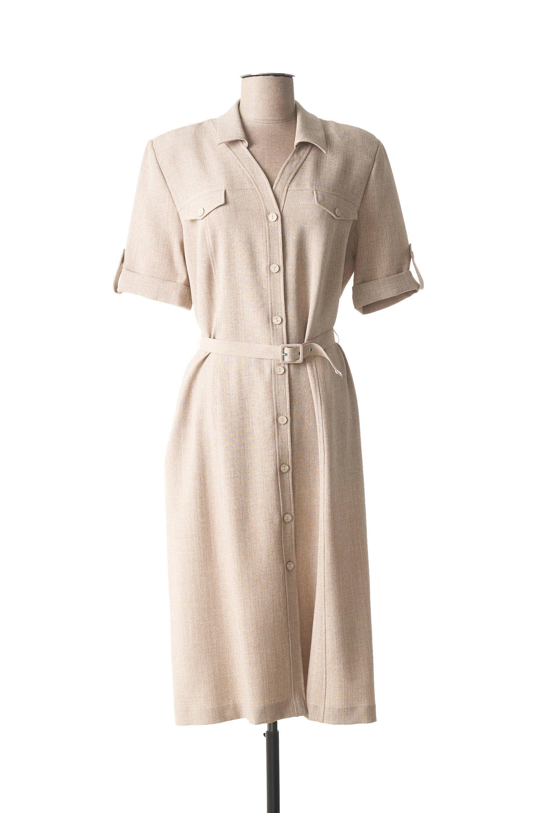 Rochie Midi France Rivoire Bej Mâneci Scurte