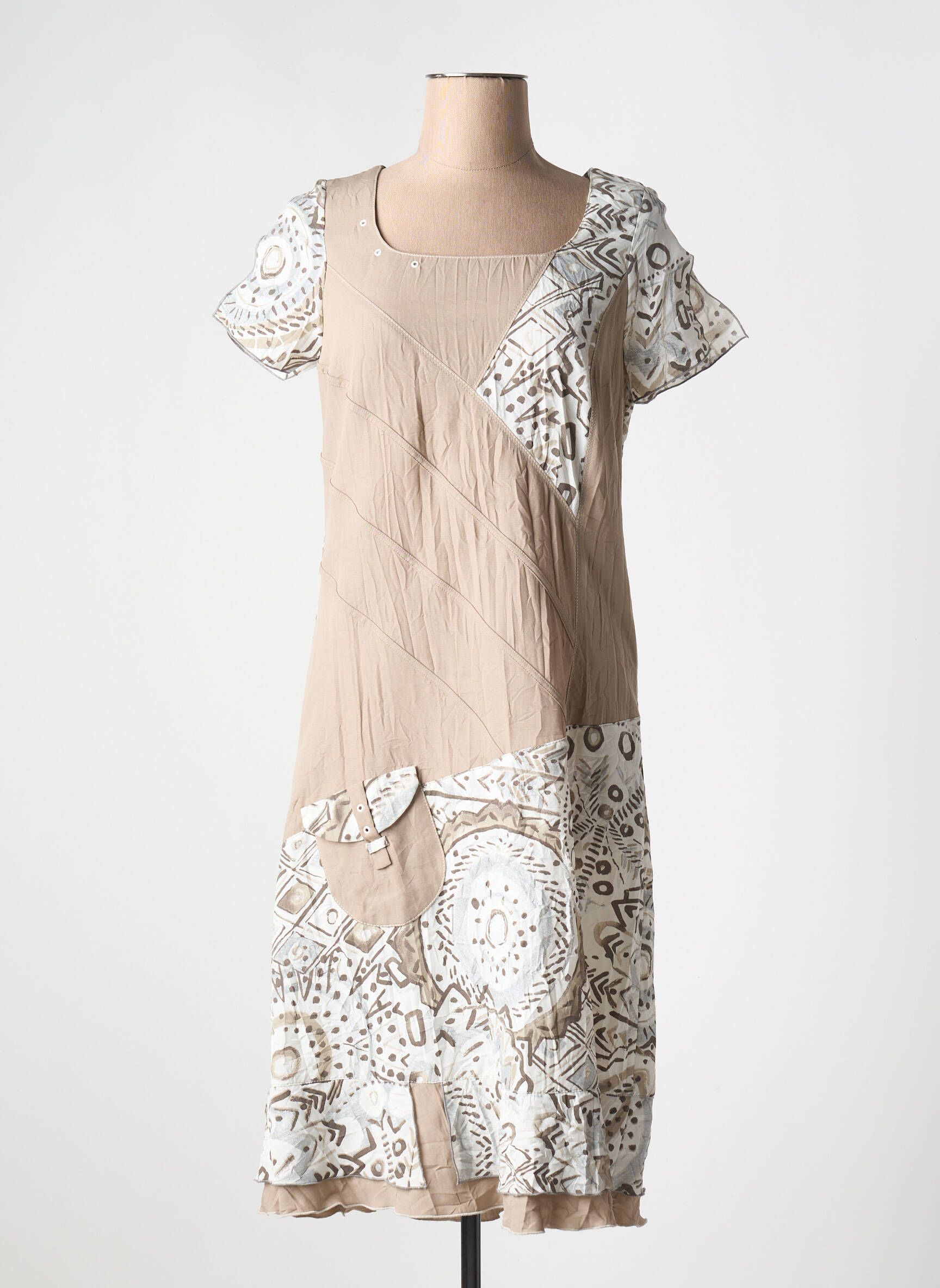 Rochie Midi France Rivoire Bej Mâneci Scurte