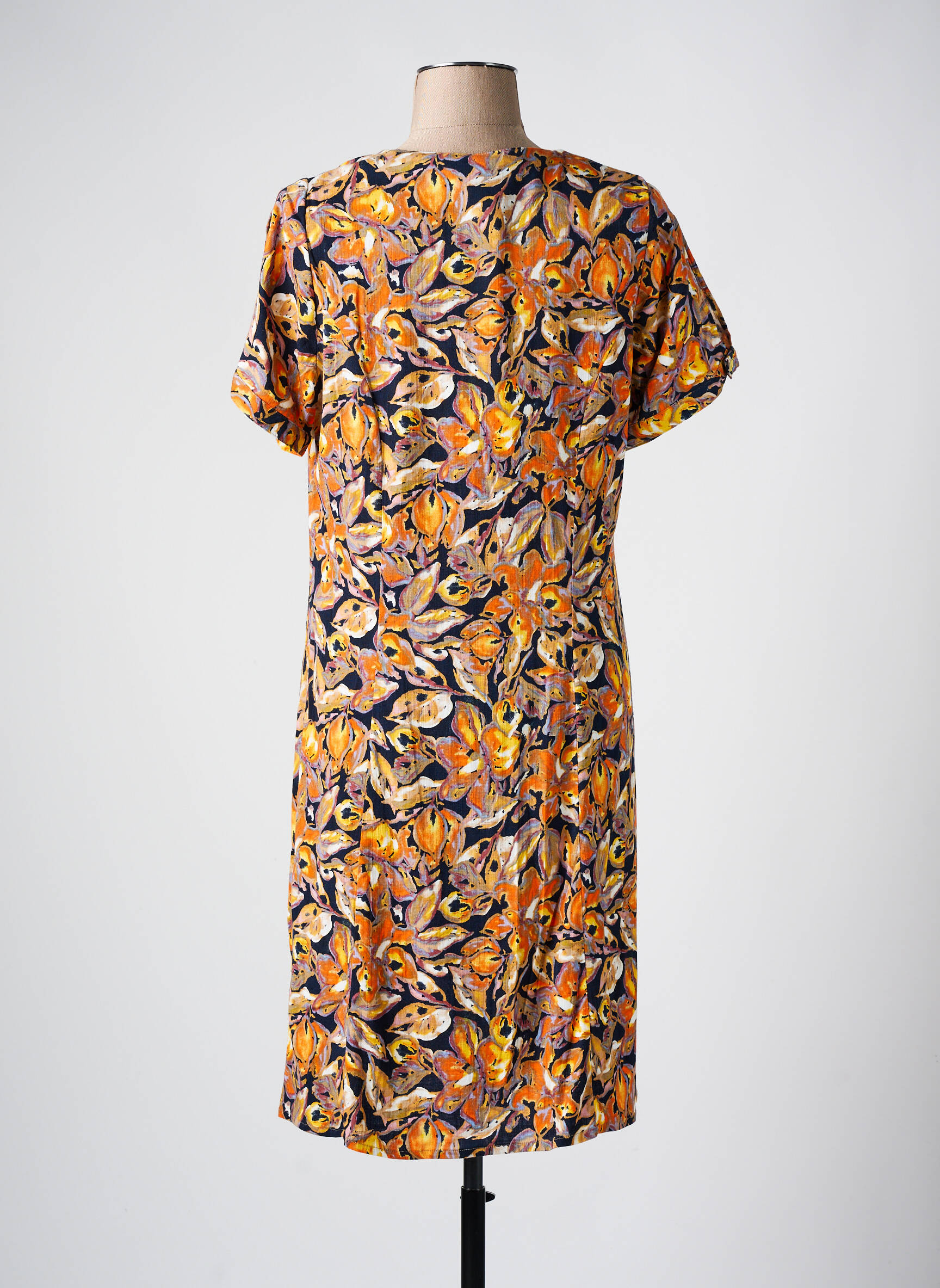 Rochie Midi France Rivoire Portocaliu Mâneci Scurte