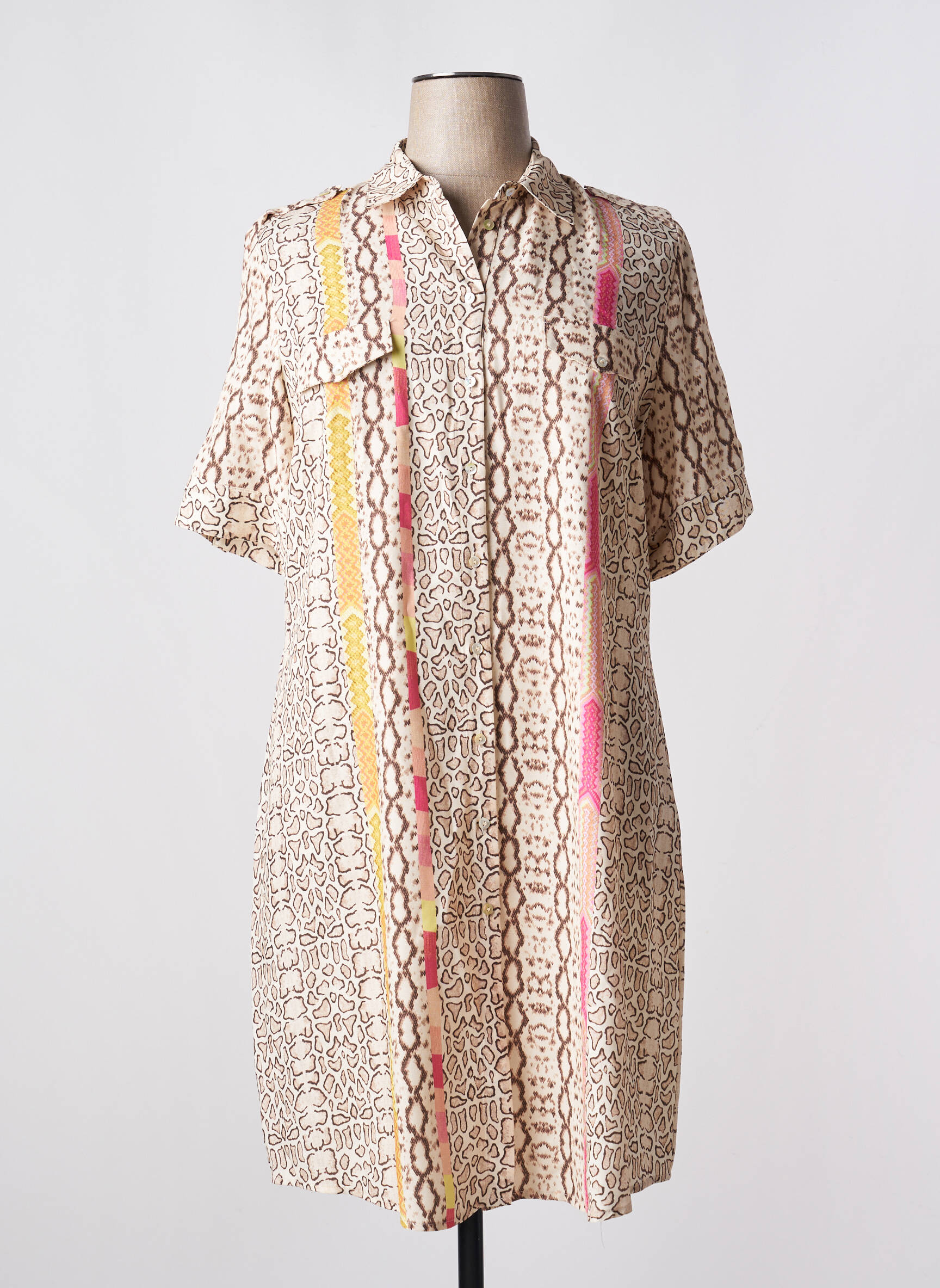 Rochie Midi Fuego Woman Bej Mâneci Scurte