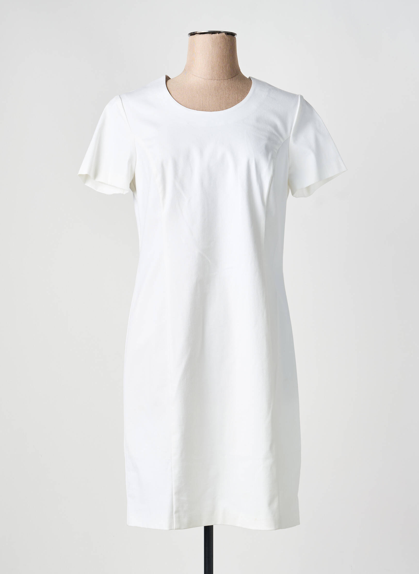 Rochie Midi Gevana Alb Mâneci Scurte