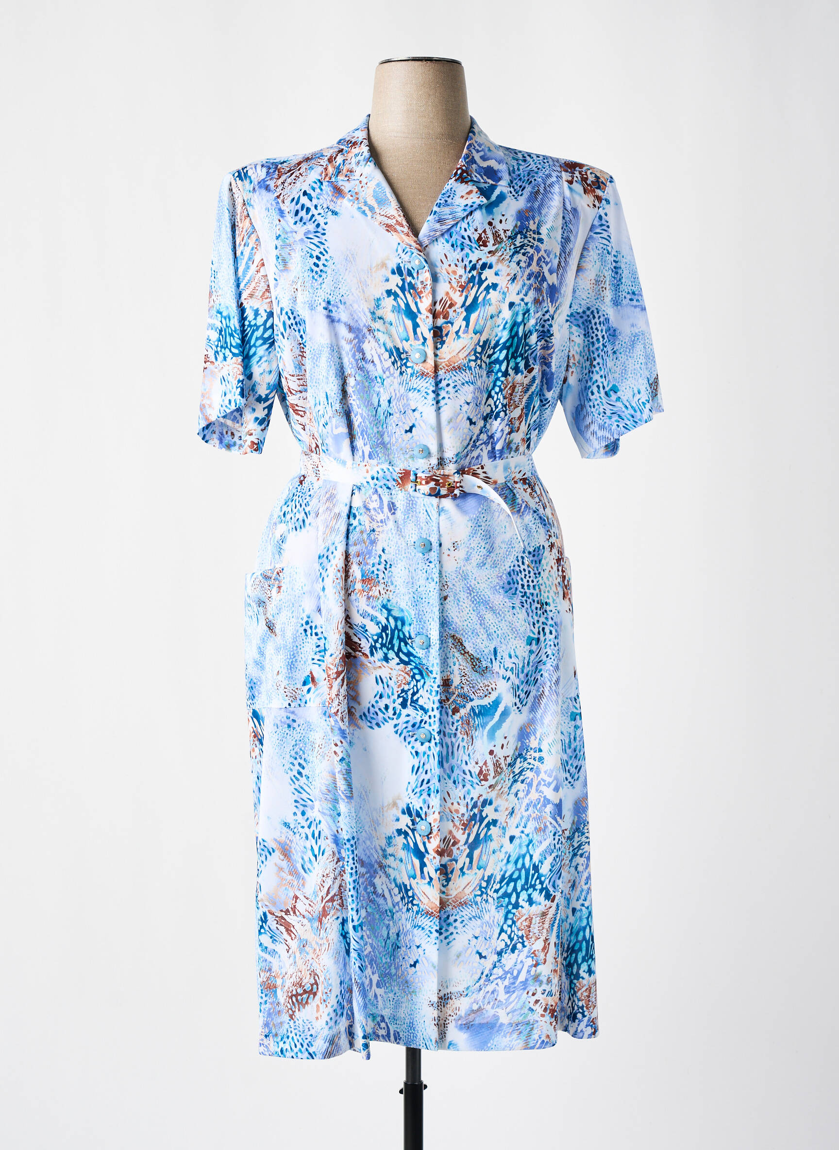 Rochie Midi Gevana Albastru Mâneci Scurte