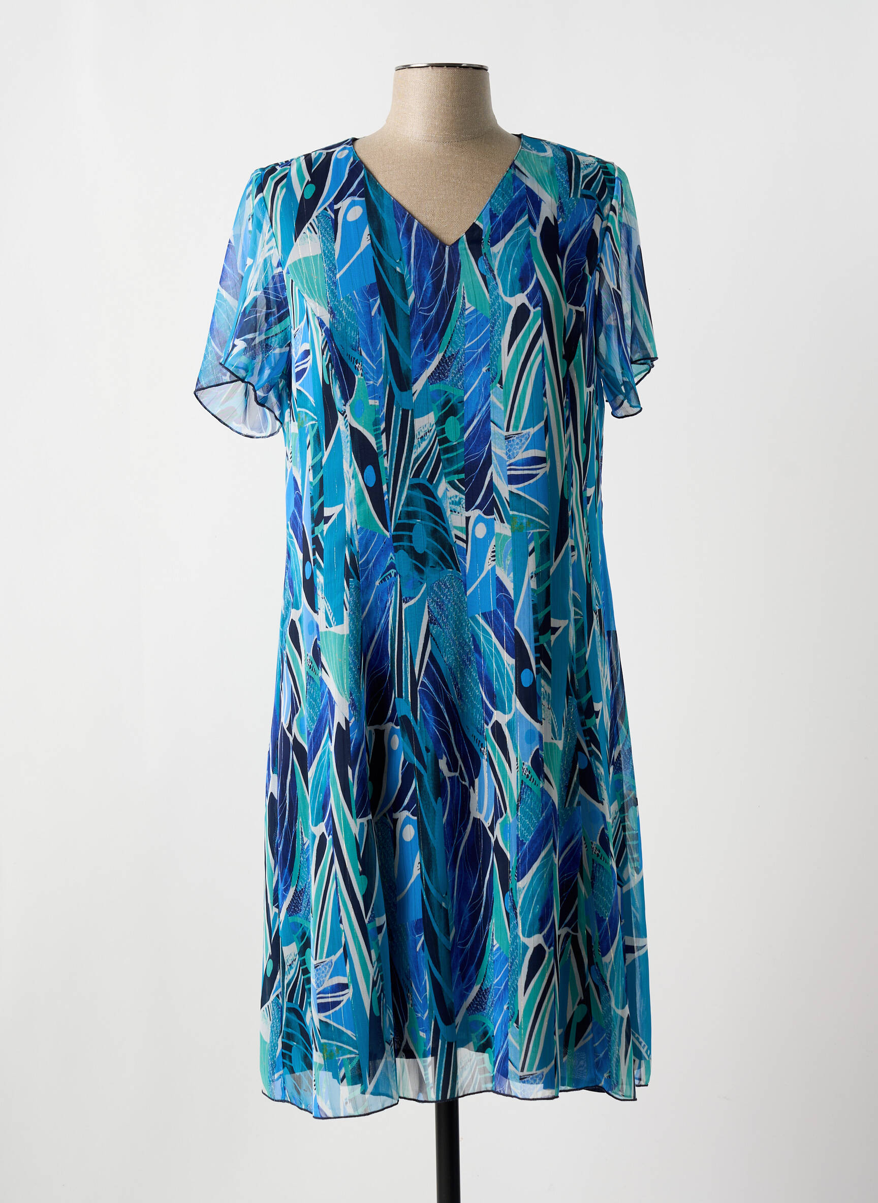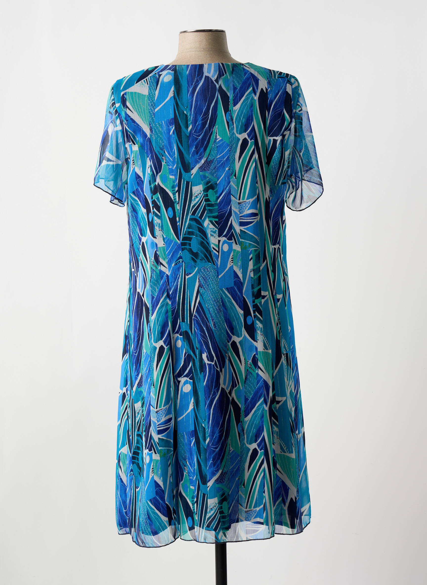 Rochie Midi Gevana Albastru Mâneci Scurte