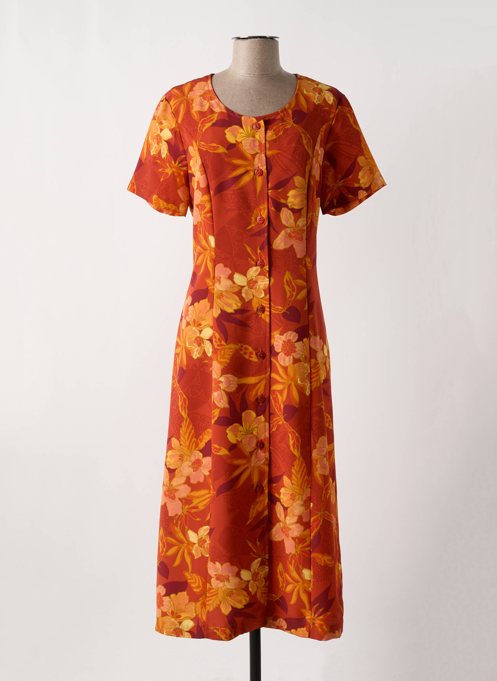Rochie Midi Griffon Portocaliu Mâneci Scurte