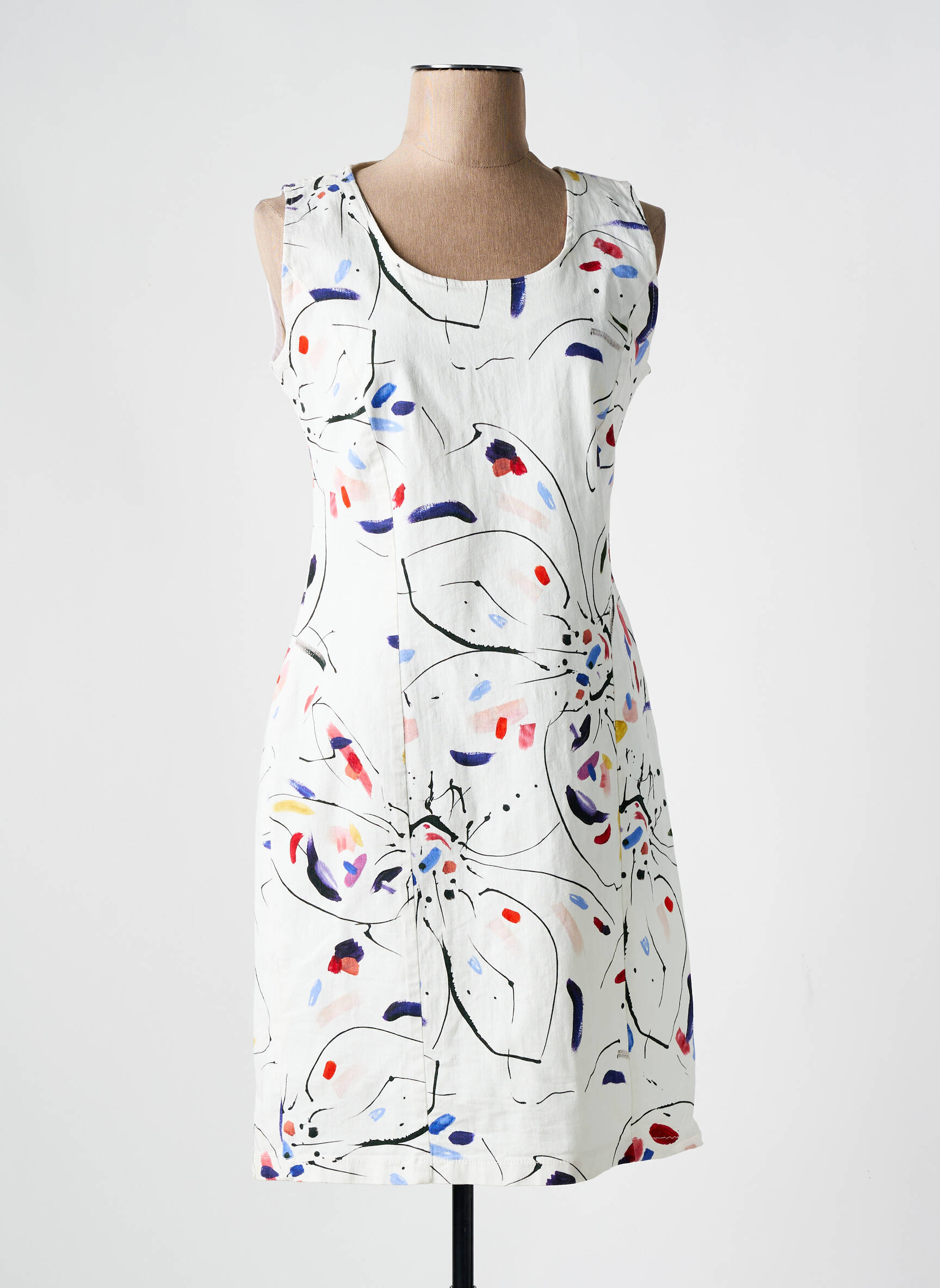 Rochie Midi Guy Dubouis Alb Fără Mâneci