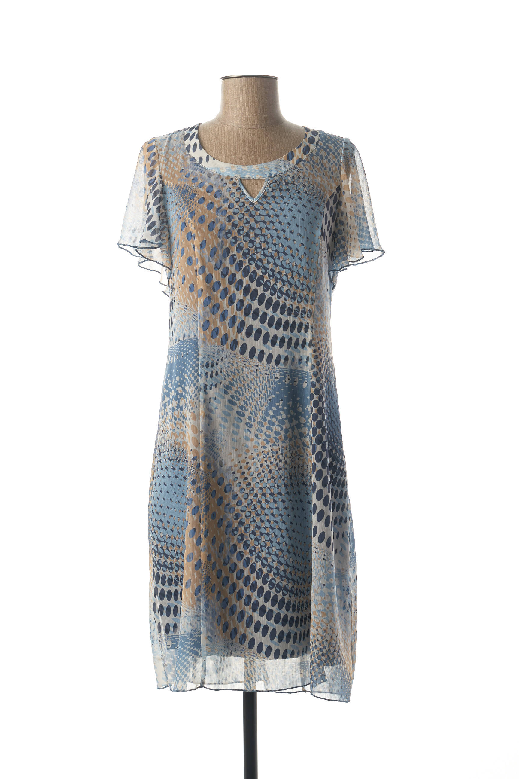 Rochie Midi Guy Dubouis Albastru Mâneci Scurte