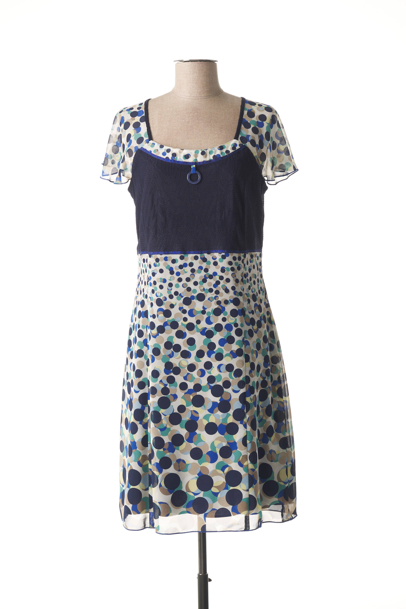 Rochie Midi Guy Dubouis Albastru Mâneci Scurte