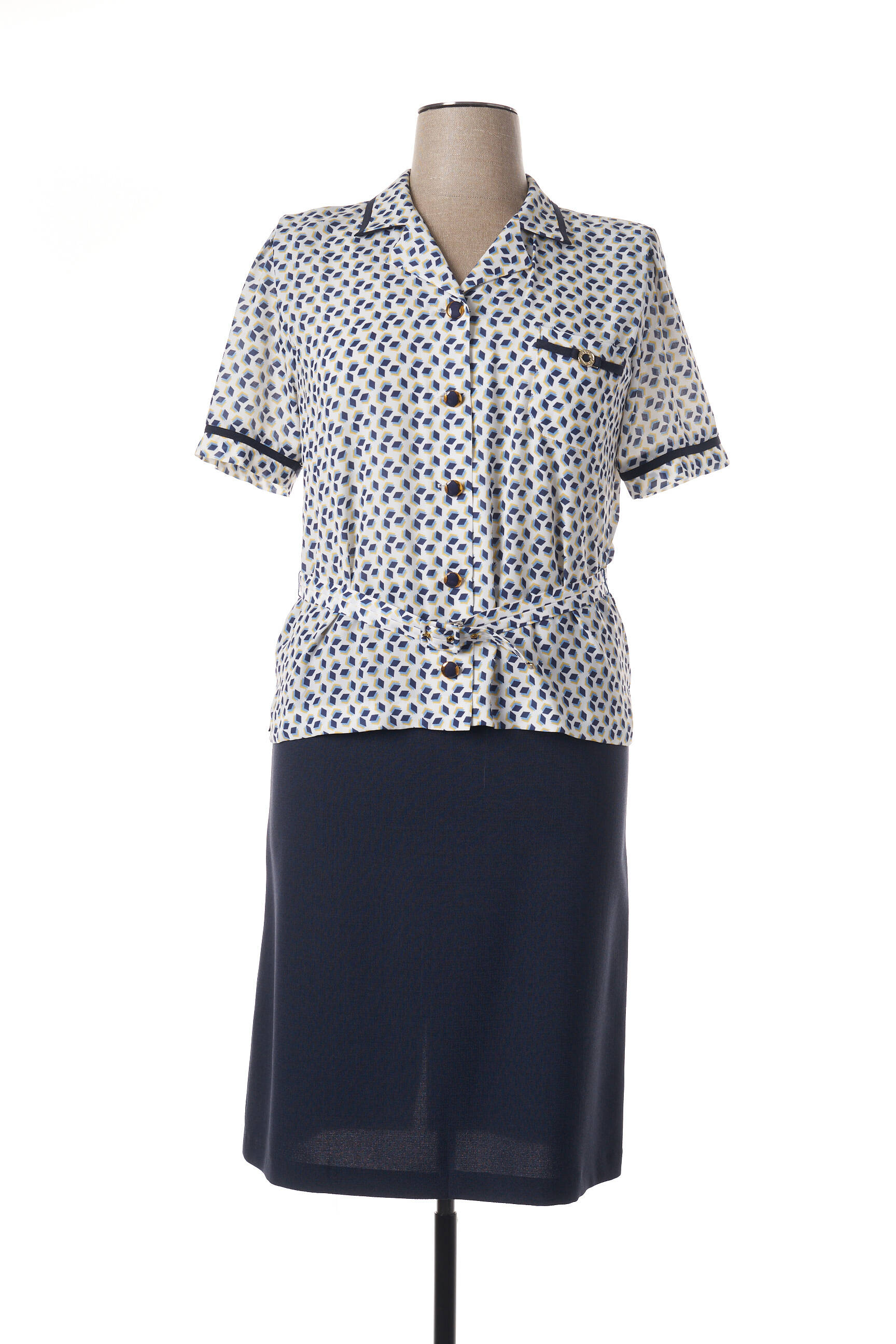 Rochie Midi Guy Dubouis Albastru Mâneci Scurte