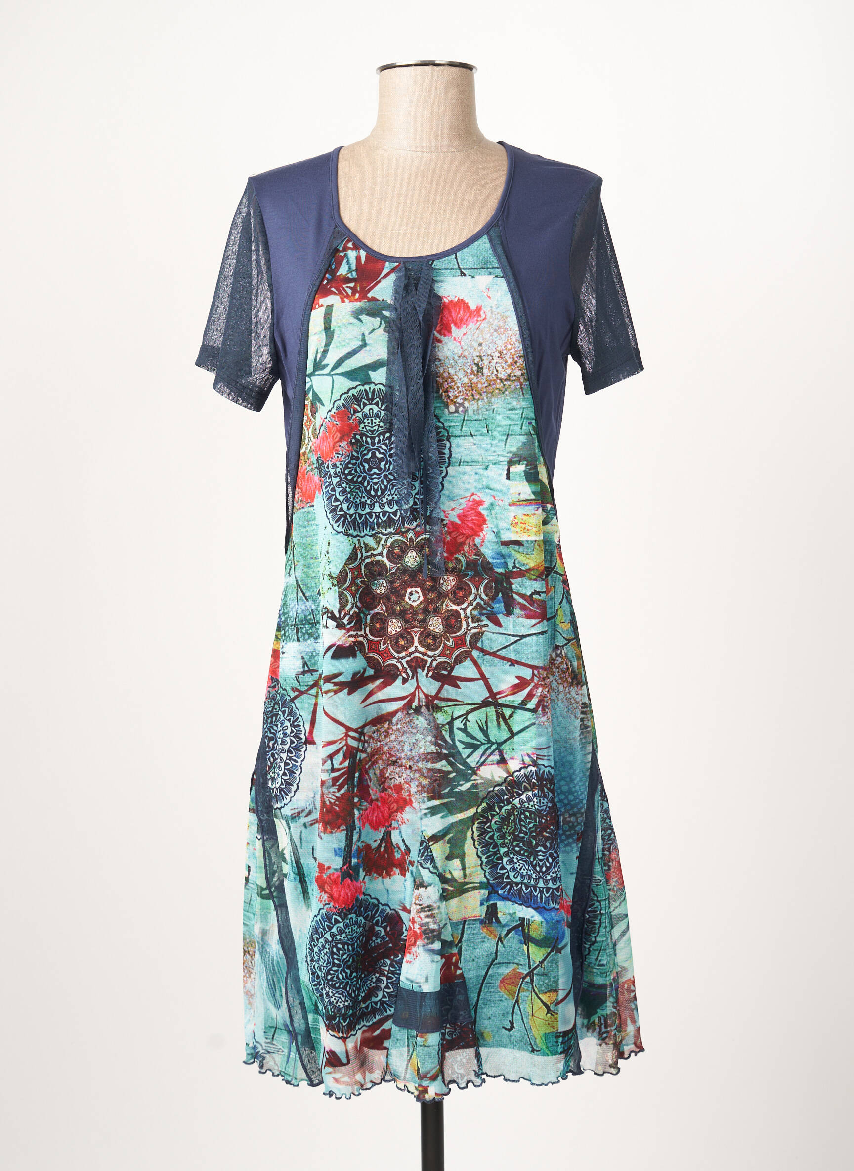 Rochie Midi Guy Dubouis Albastru Mâneci Scurte