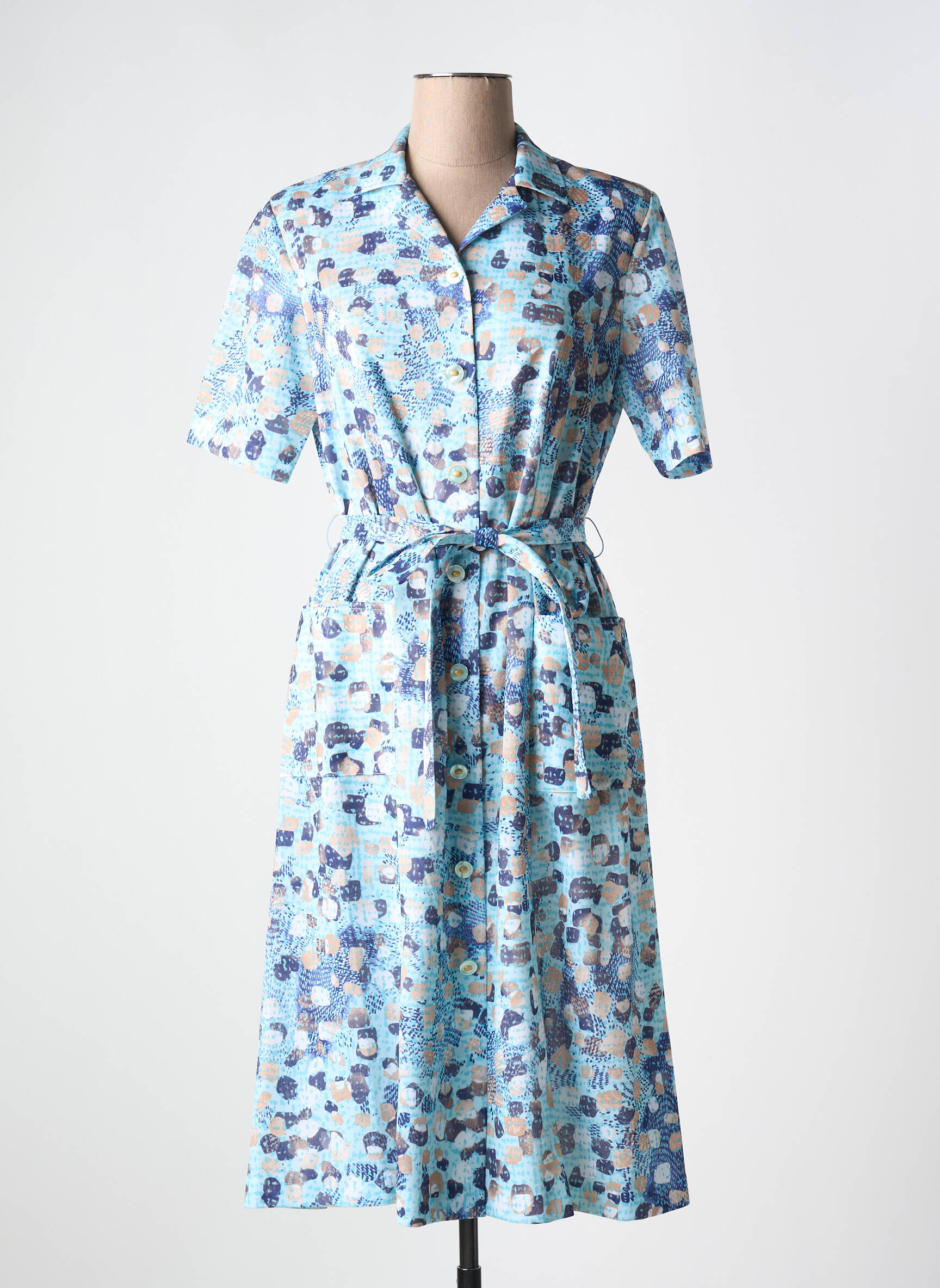 Rochie Midi Guy Dubouis Albastru Mâneci Scurte