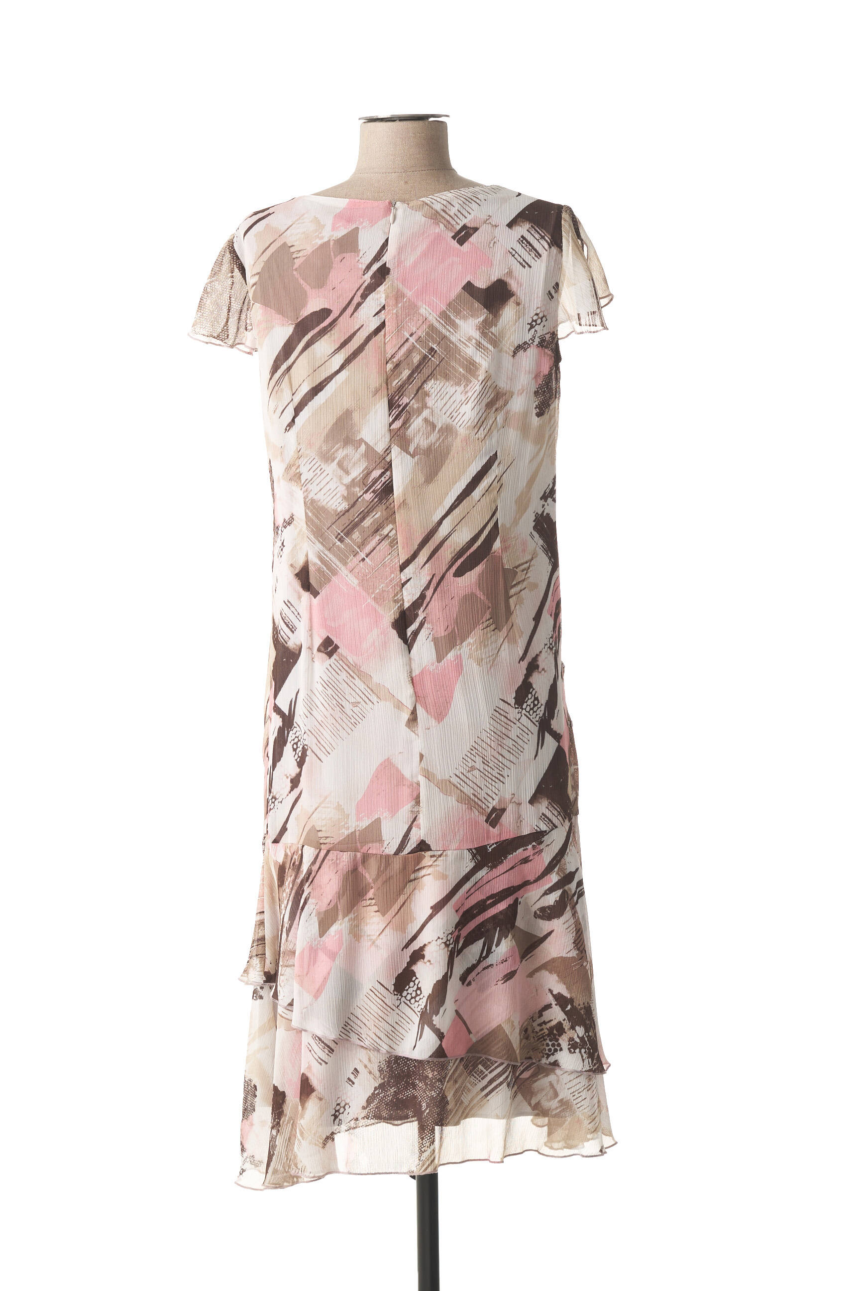 Rochie Midi Guy Dubouis Bej Mâneci Scurte