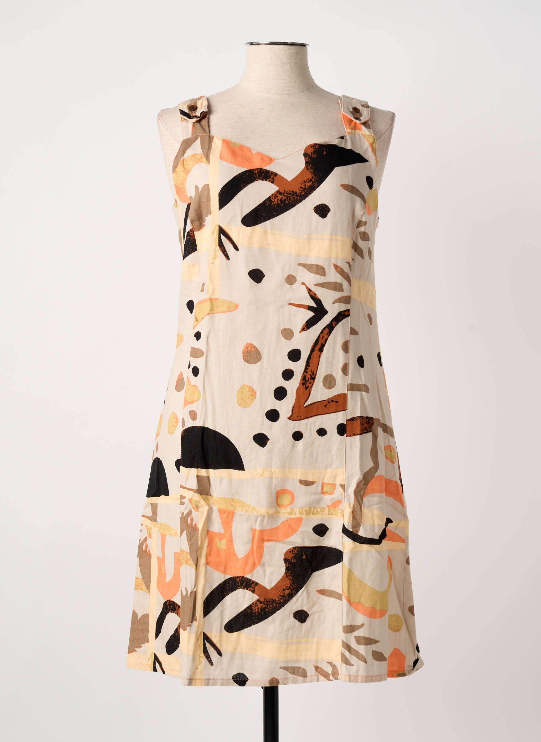 Rochie Midi Guy Dubouis Bej Fără Mâneci