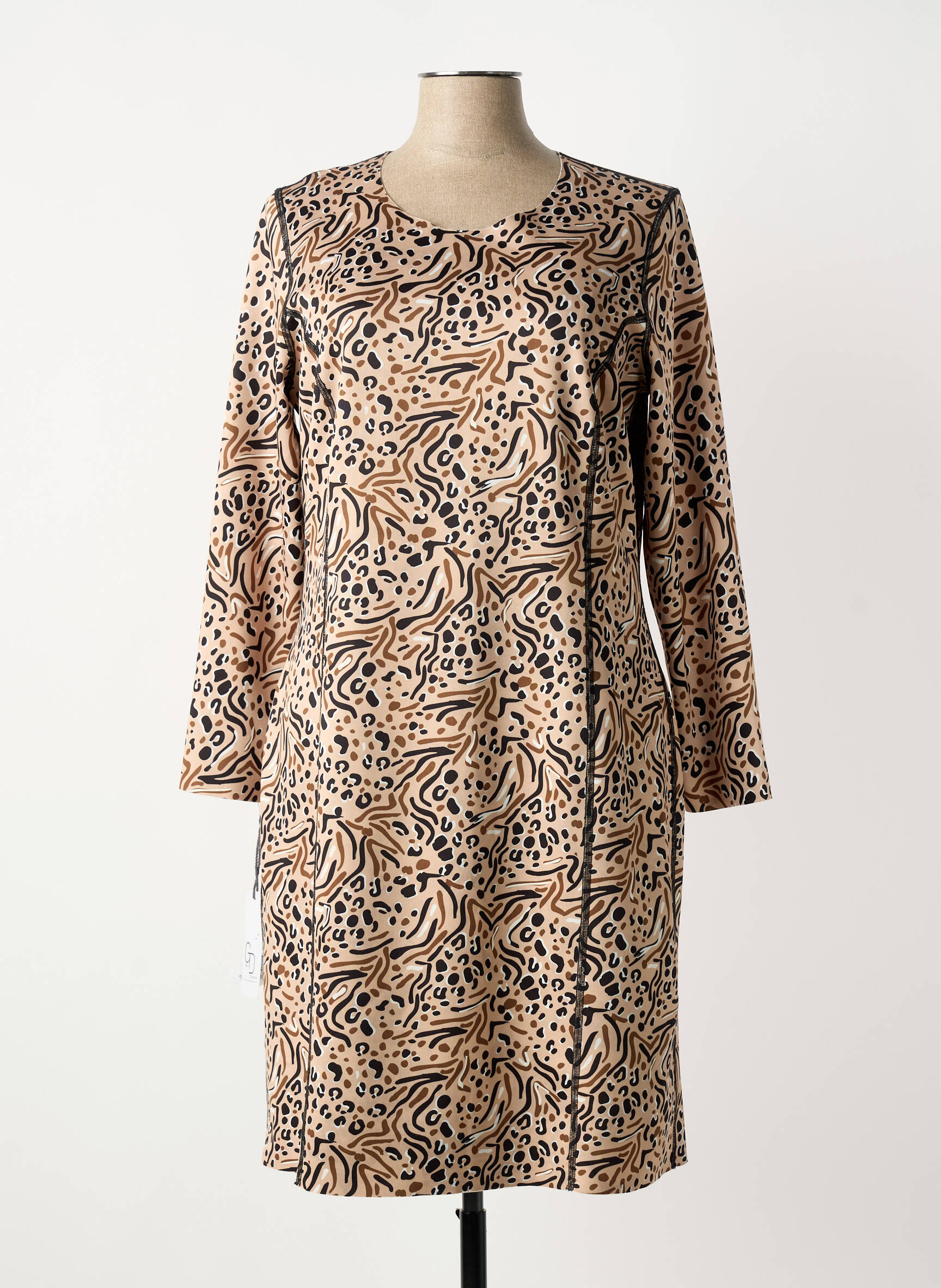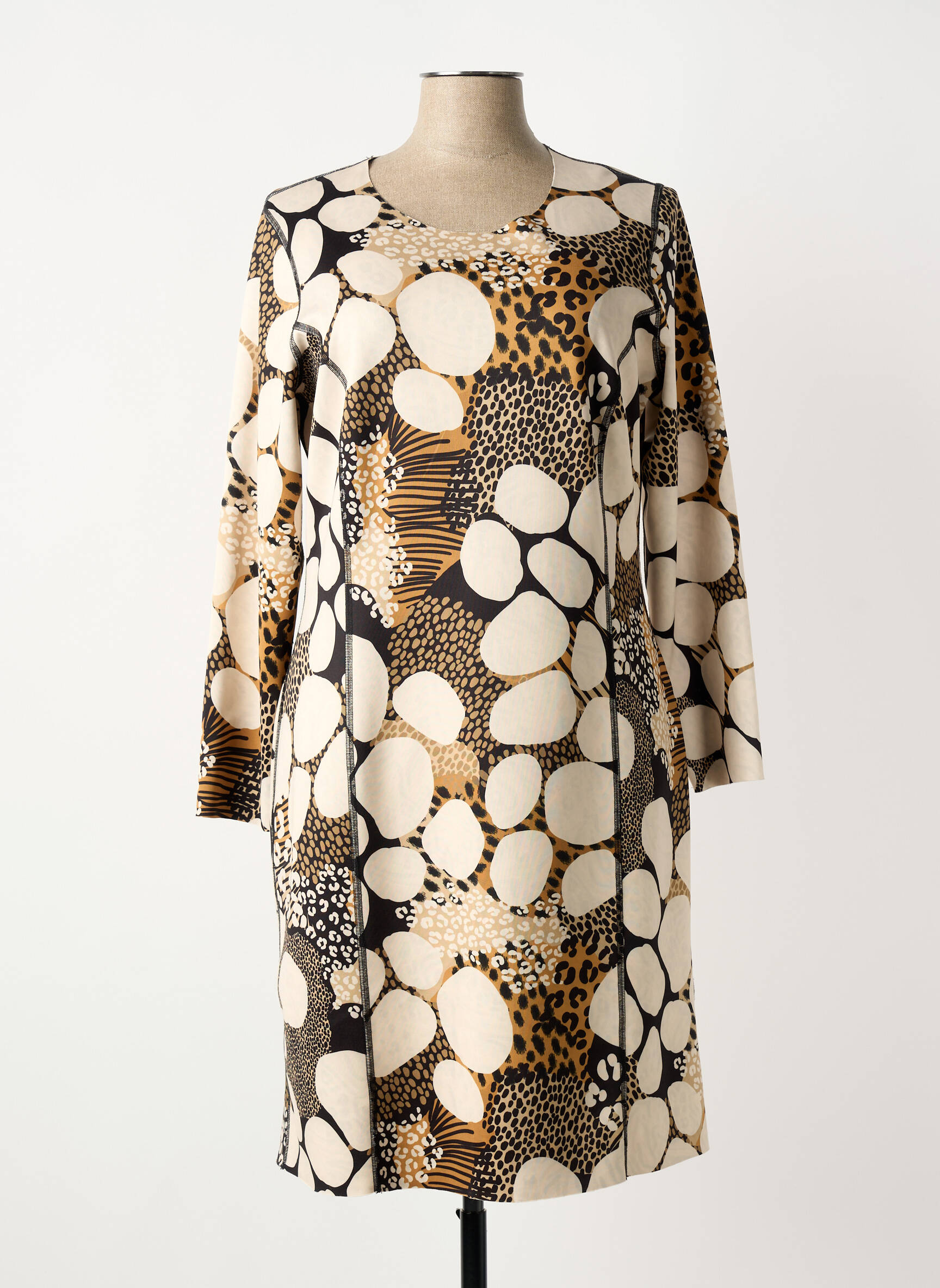 Rochie Midi Guy Dubouis Bej Mâneci Lungi