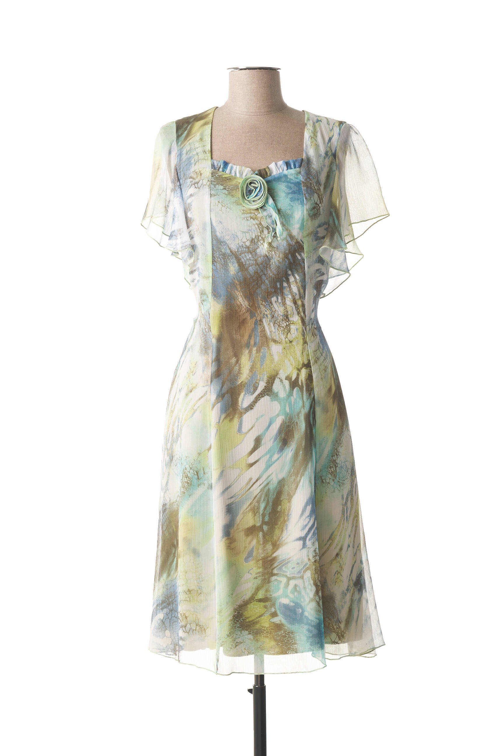 Rochie Midi Guy Dubouis Verde Mâneci Scurte