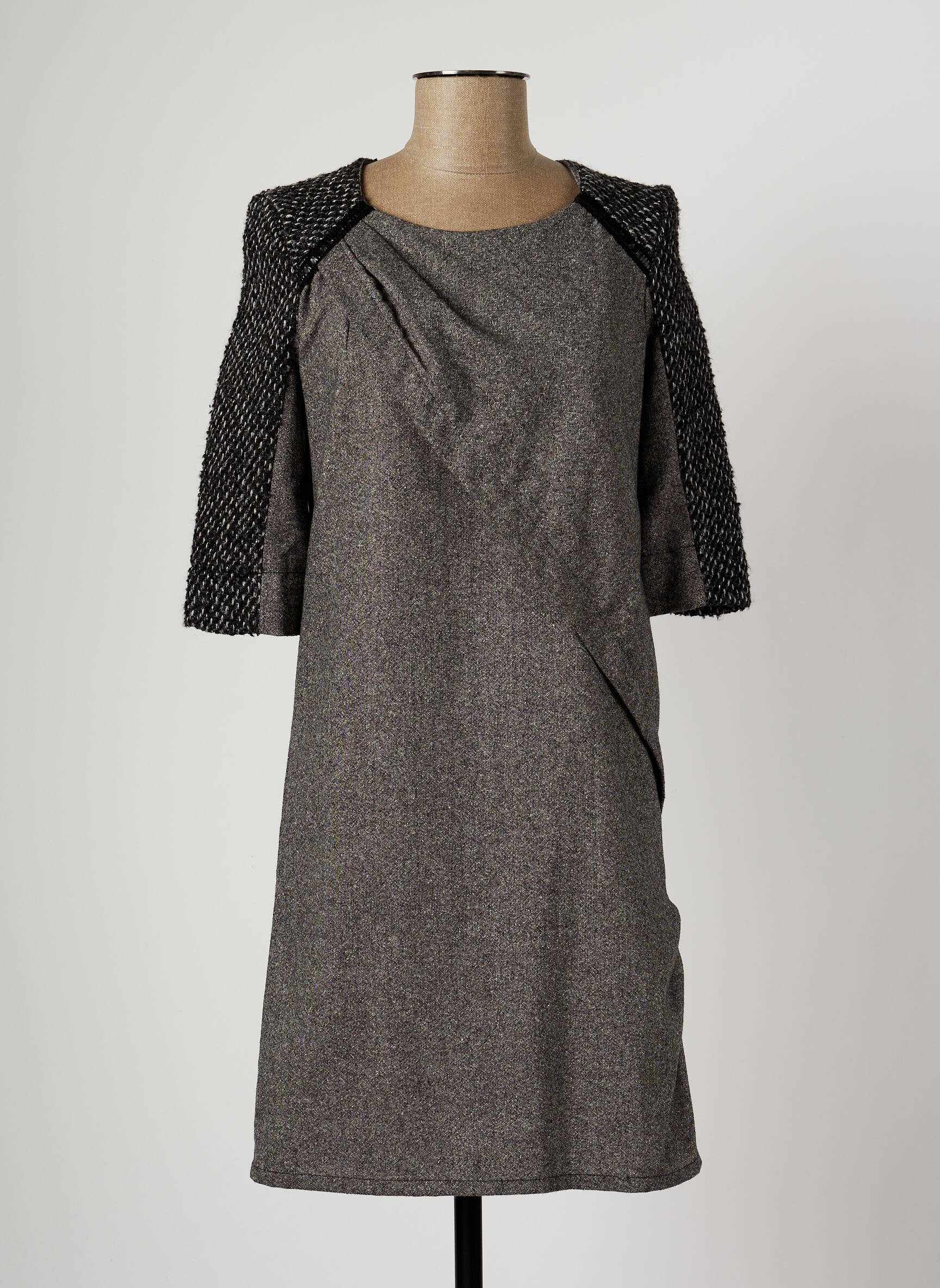Rochie Midi Helena Sorel Gri Mâneci Scurte