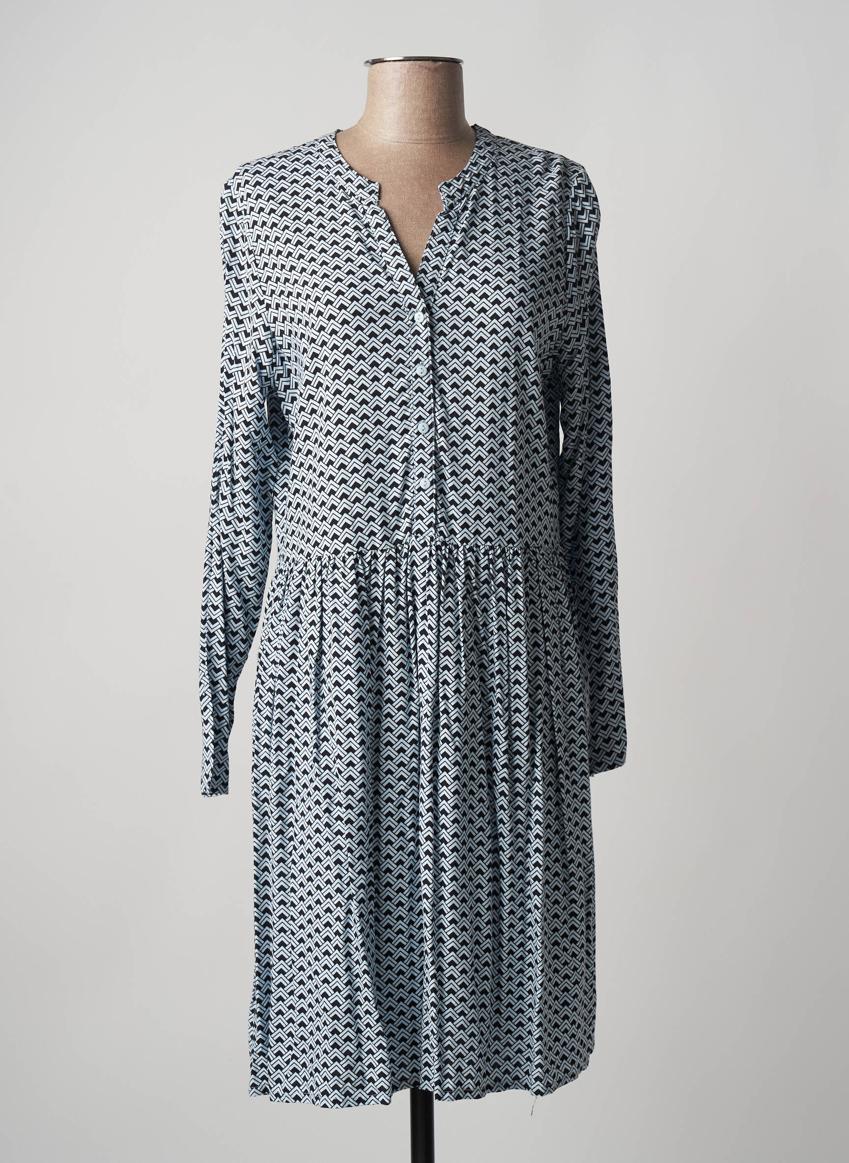 Rochie Midi Ichi Albastru Mâneci Lungi