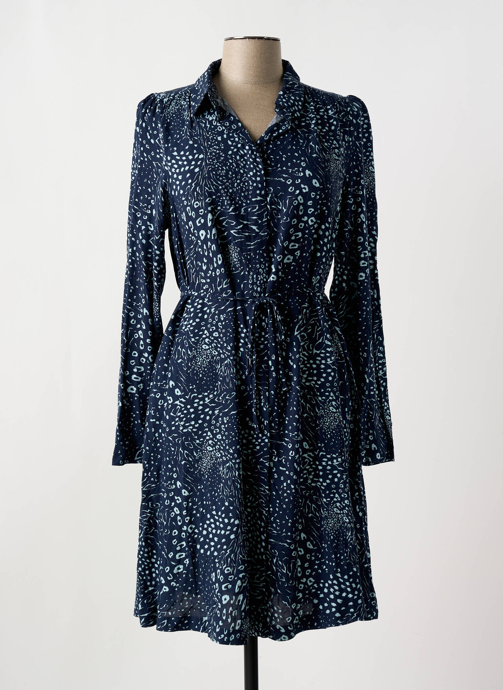 Rochie Midi Ichi Albastru Mâneci Lungi
