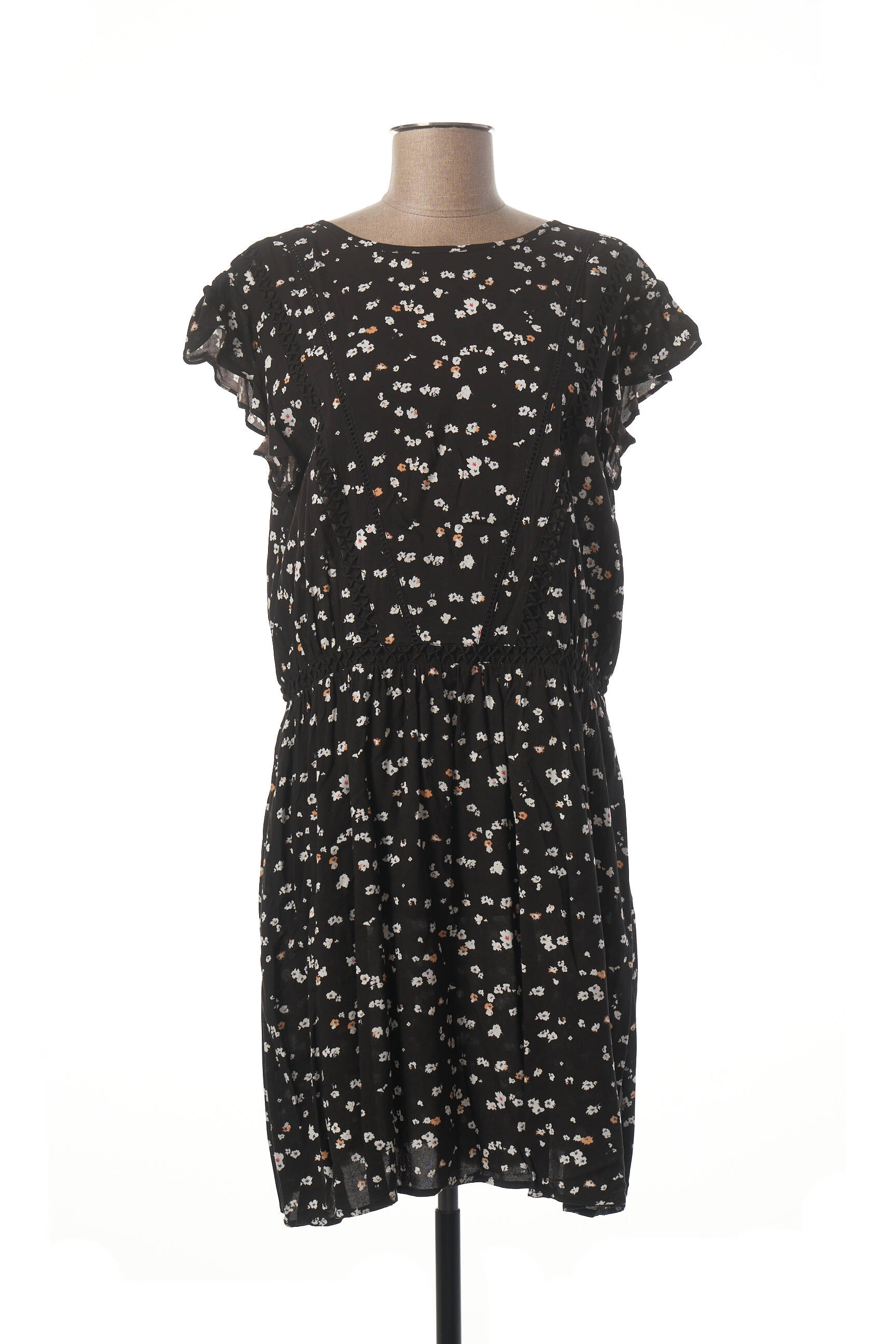 Rochie Midi Ichi Negru Mâneci Scurte