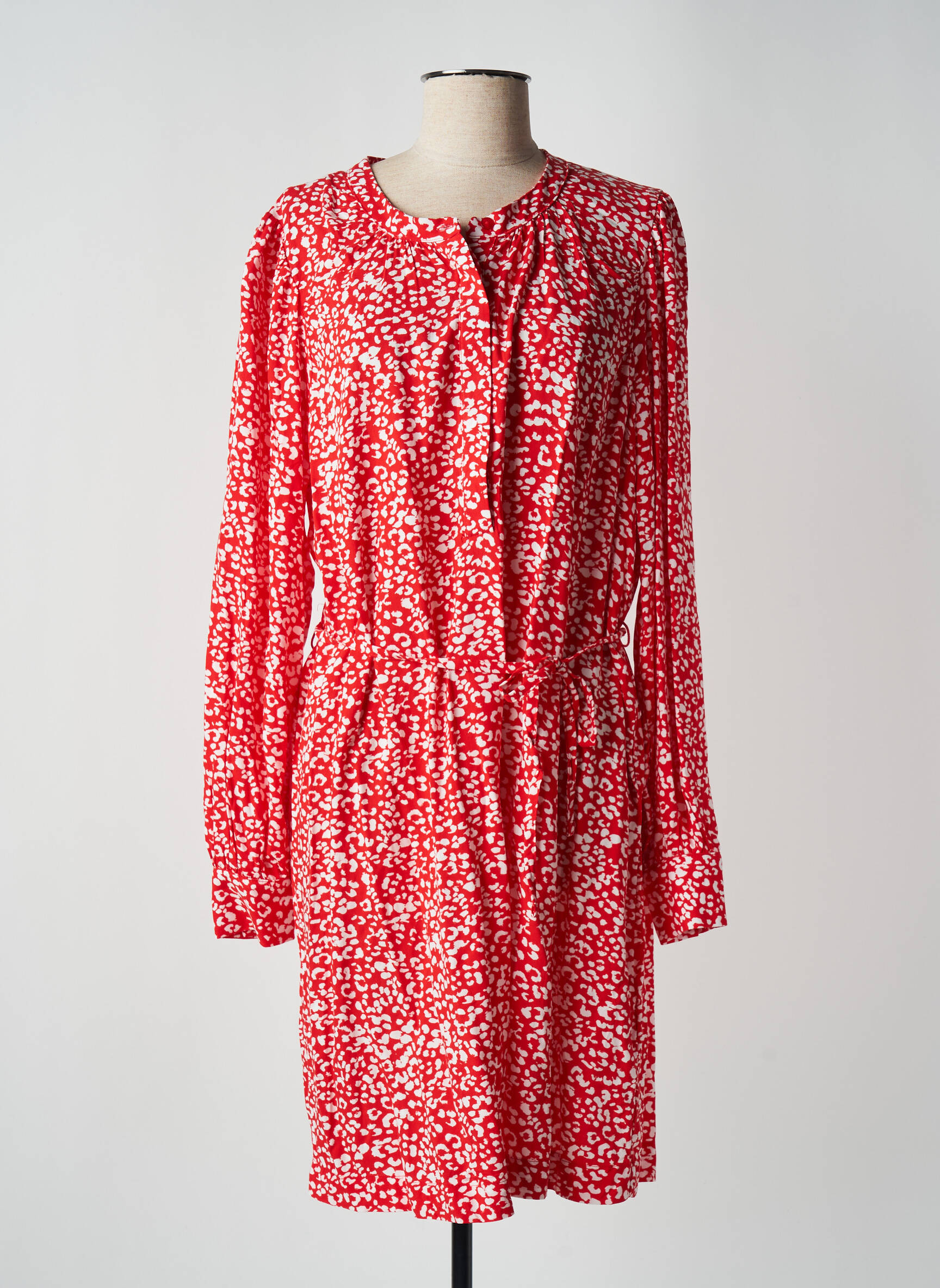 Rochie Midi Ichi Roșu Mâneci Lungi
