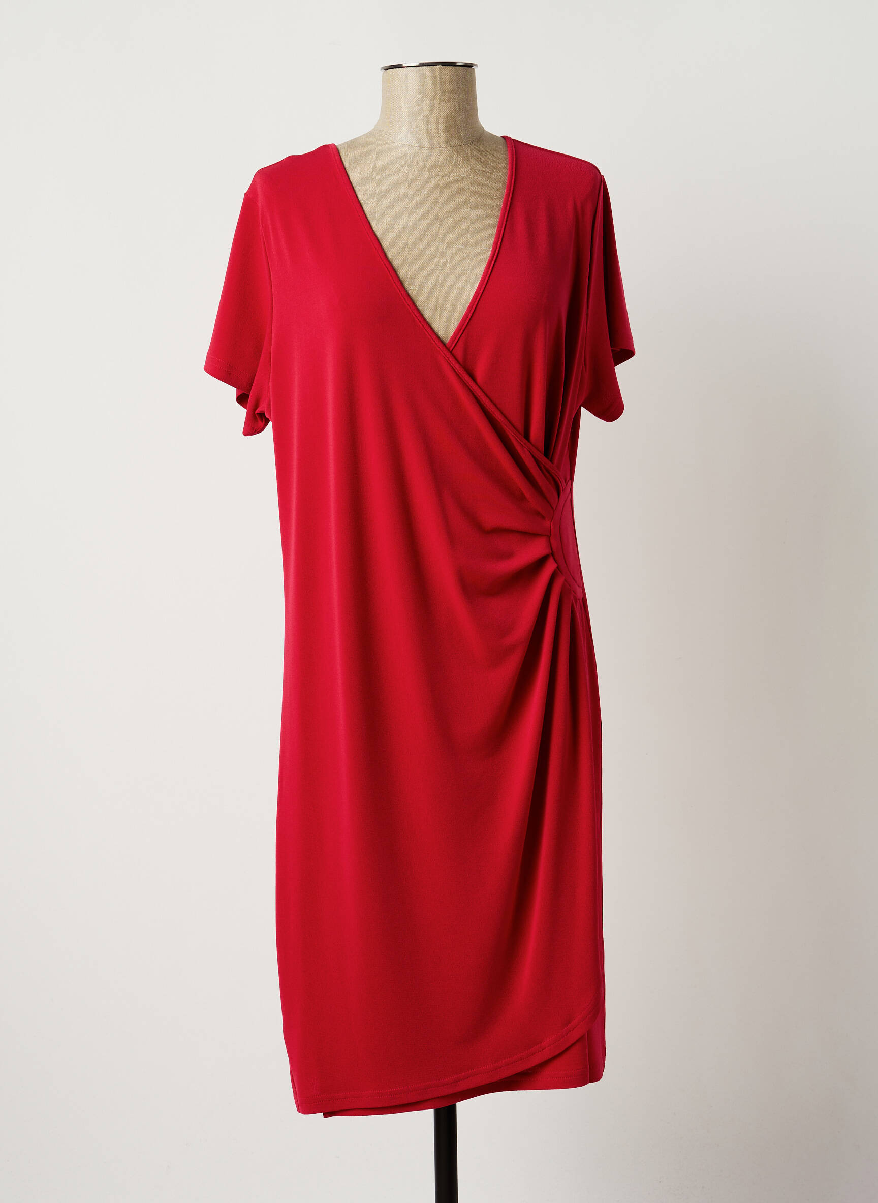Rochie Midi Jumfil Roșu Mâneci Scurte