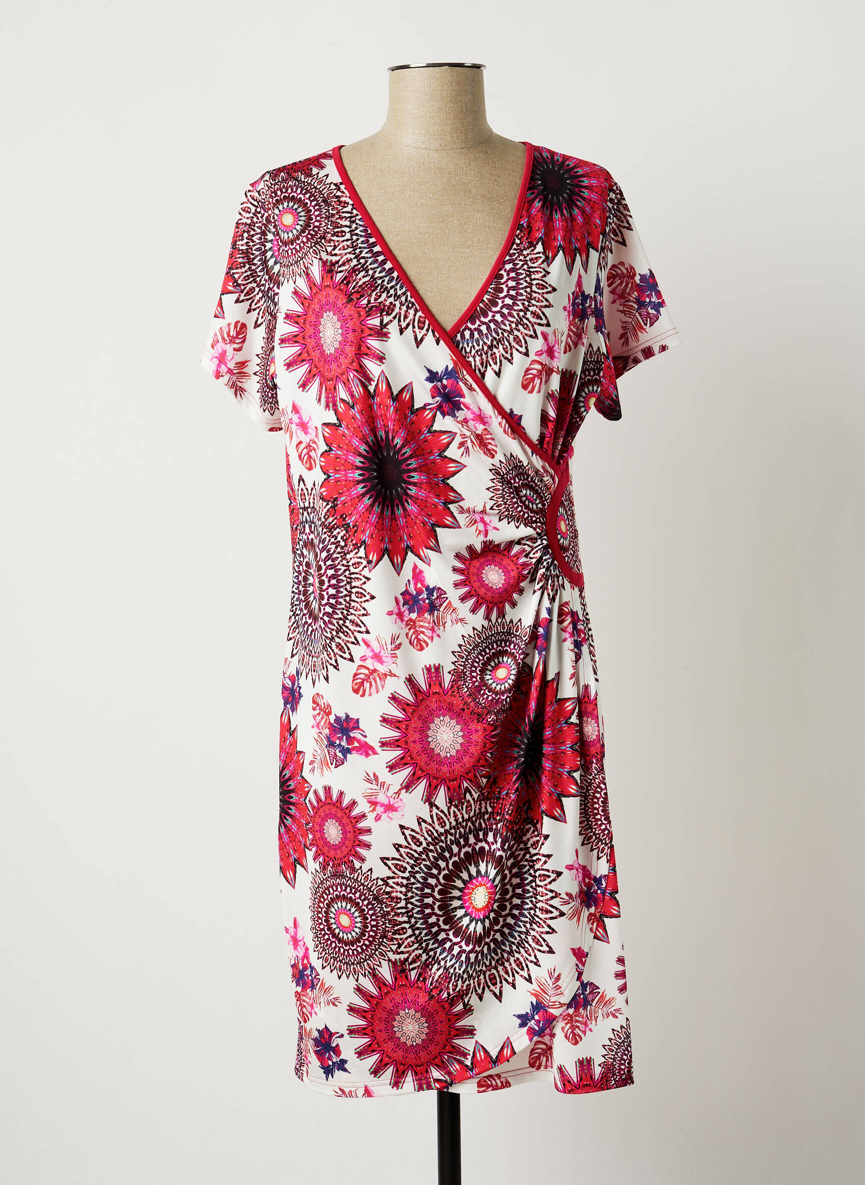 Rochie Midi Jumfil Roșu Mâneci Scurte