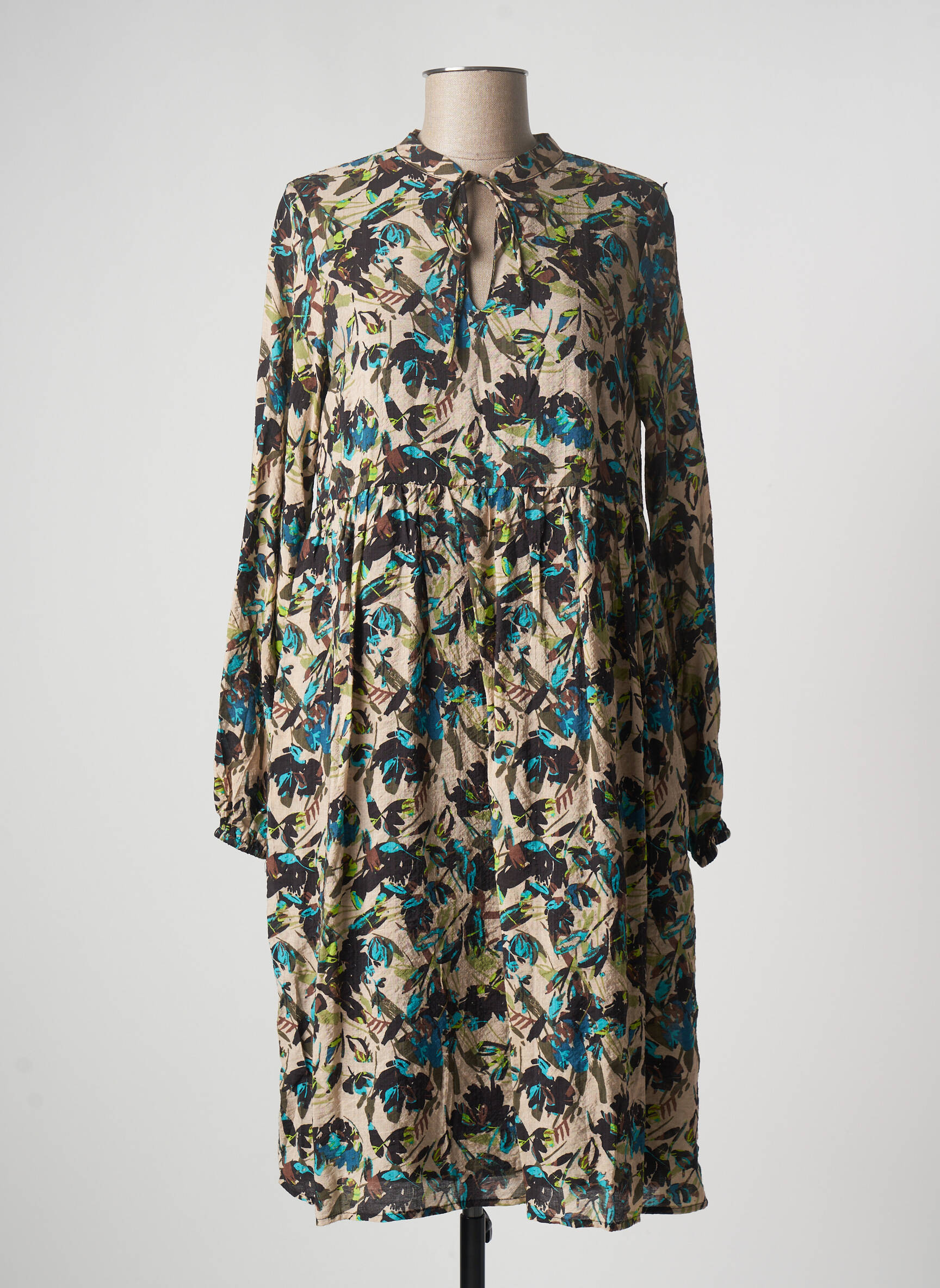 Rochie Midi Kaffe Bej Mâneci Lungi