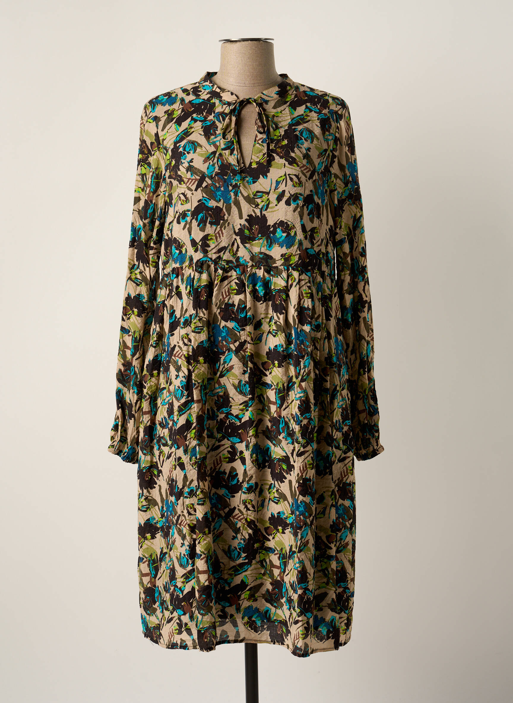 Rochie Midi Kaffe Bej Mâneci Lungi