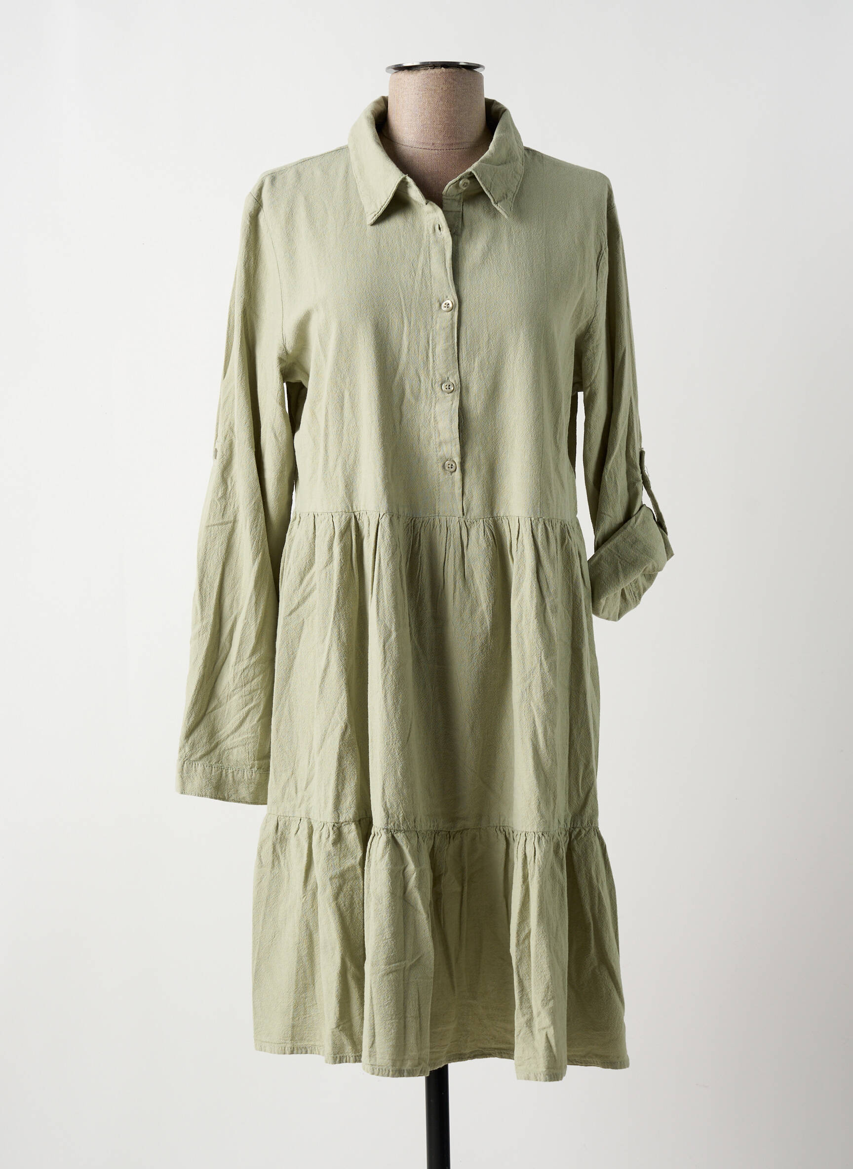 Rochie Midi Kaffe Verde Mâneci Lungi