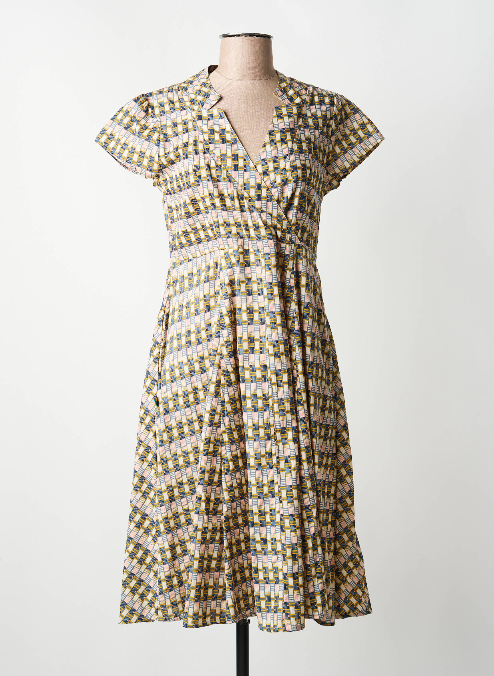 Rochie Midi Kali Yog Bej Mâneci Scurte