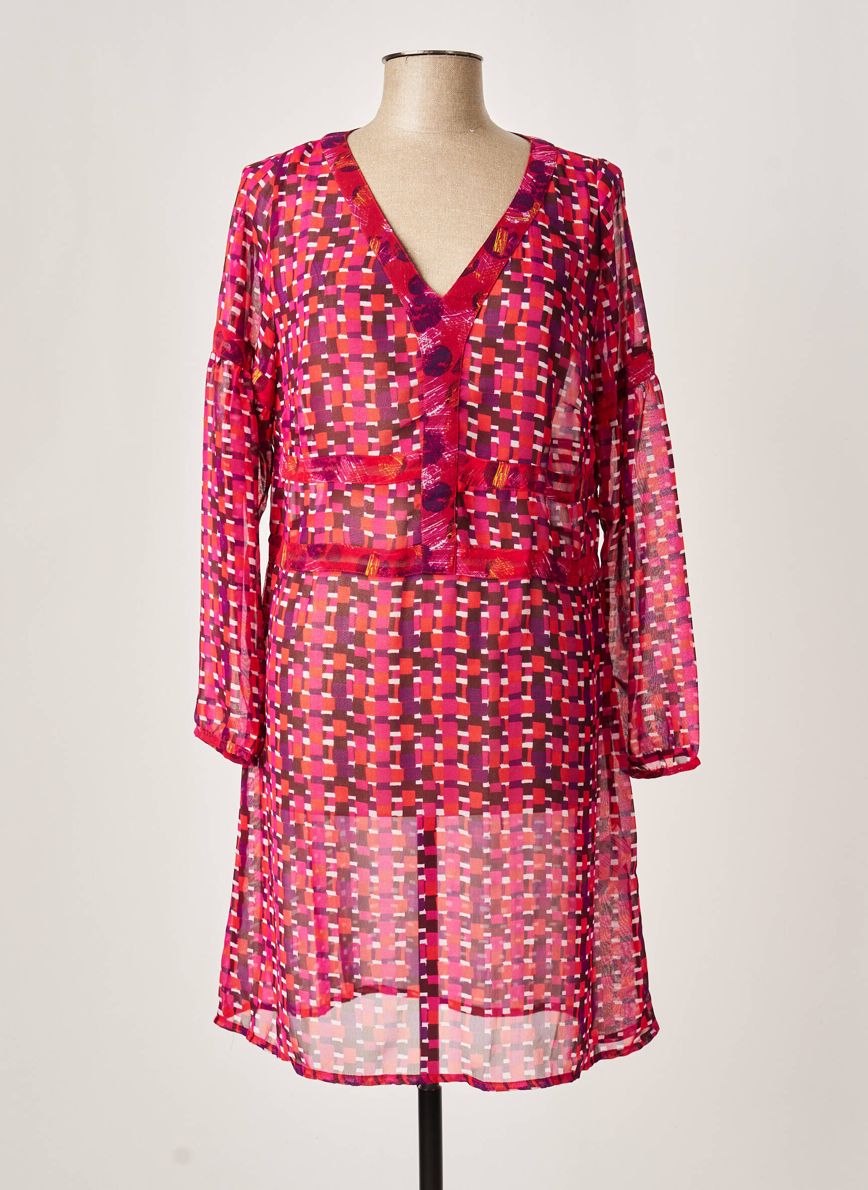 Rochie Midi La Fiancee Du Mekong Roz Mâneci Lungi