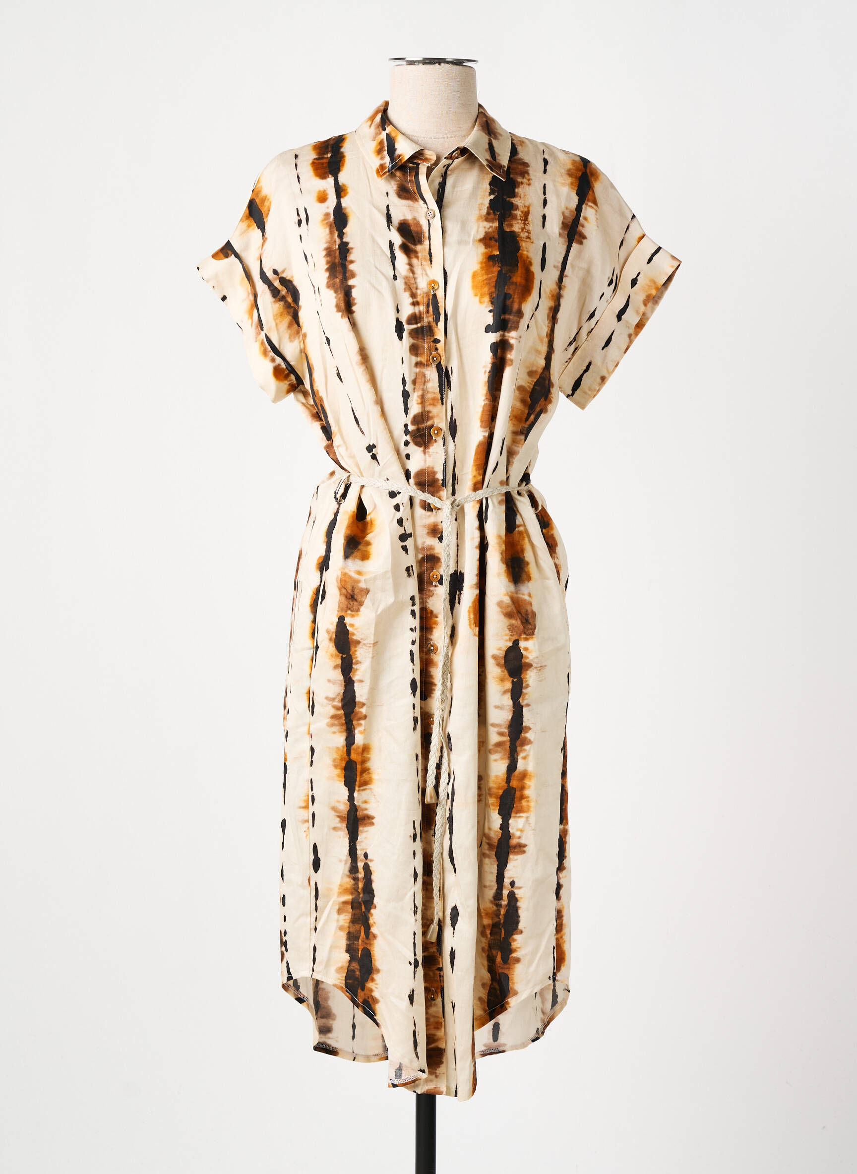 Rochie Midi La Petite Francaise Bej Mâneci Scurte