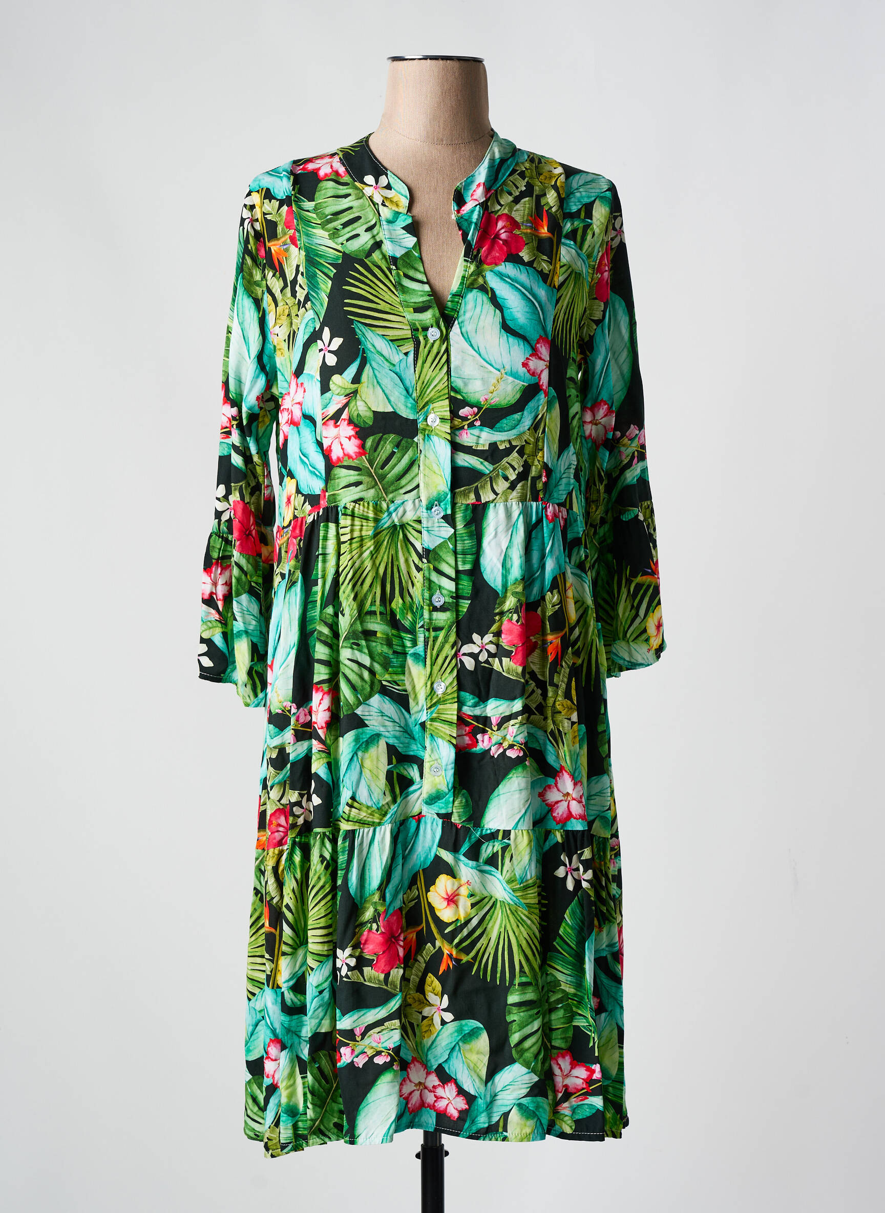 Rochie Midi Lagon Bleu Verde Mâneci Lungi