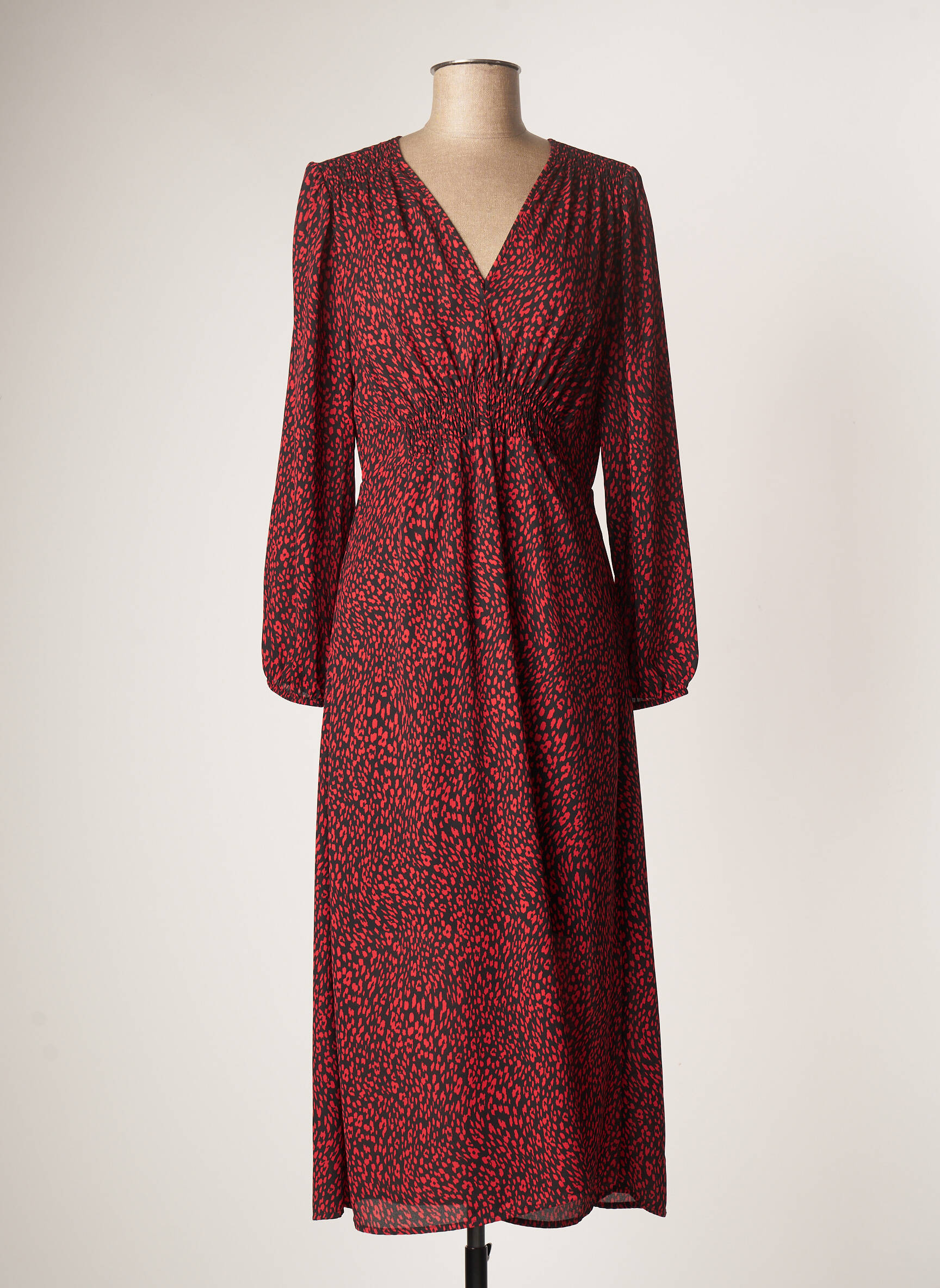 Rochie Midi Lauren Vidal Roșu Mâneci Lungi