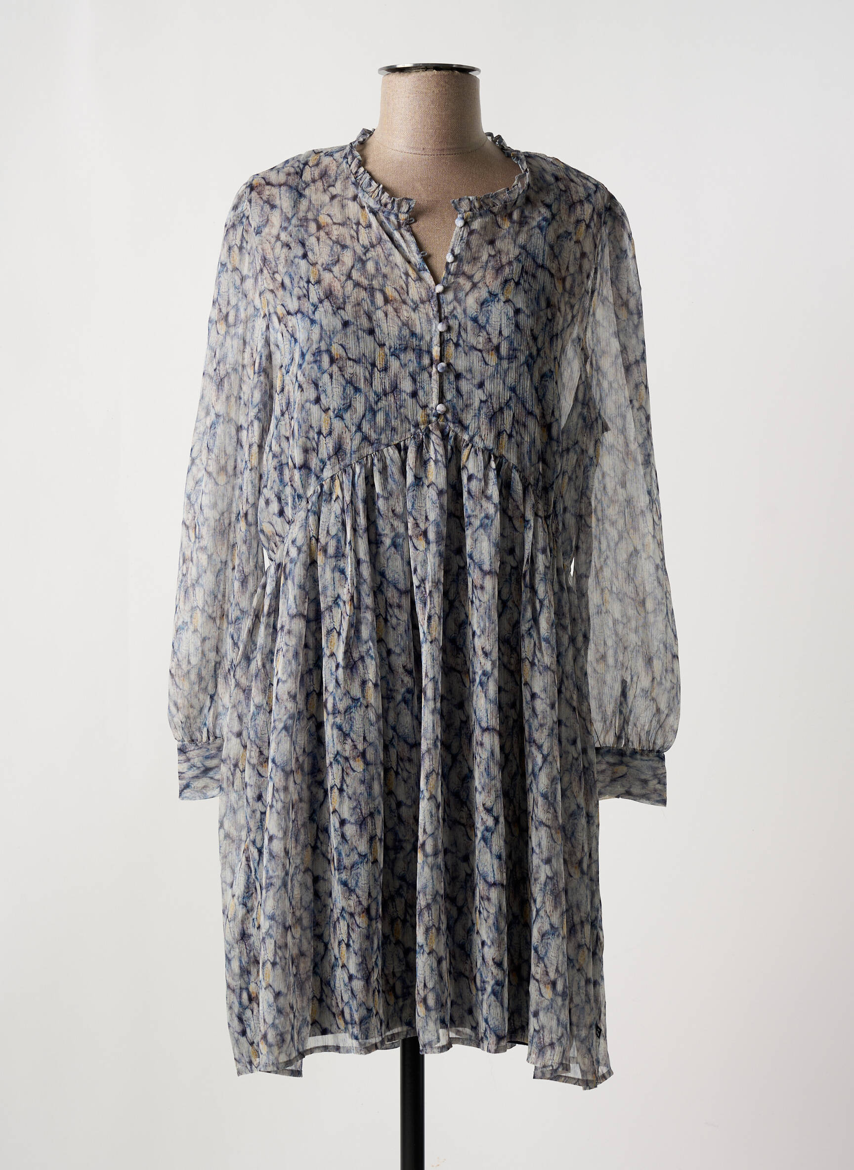 Rochie Midi Le Temps Des Cerises Albastru Mâneci Lungi