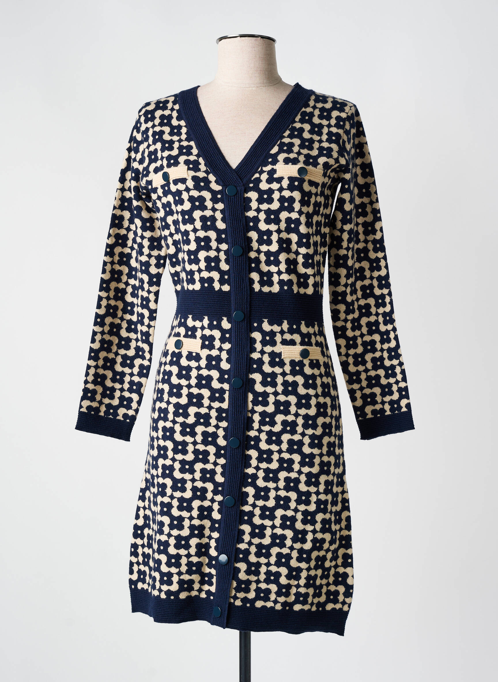 Rochie Midi Leo & Ugo Albastru Mâneci Lungi