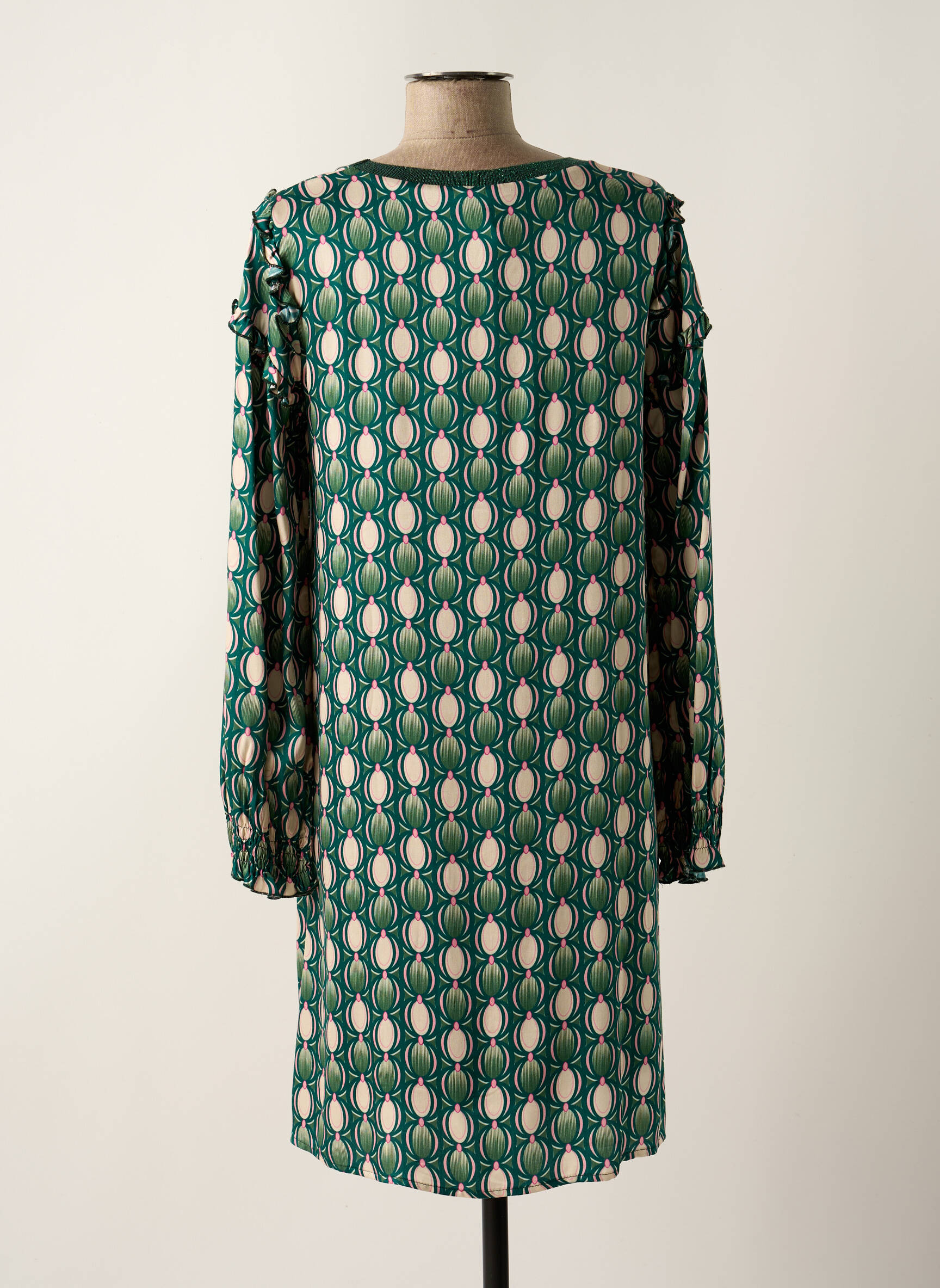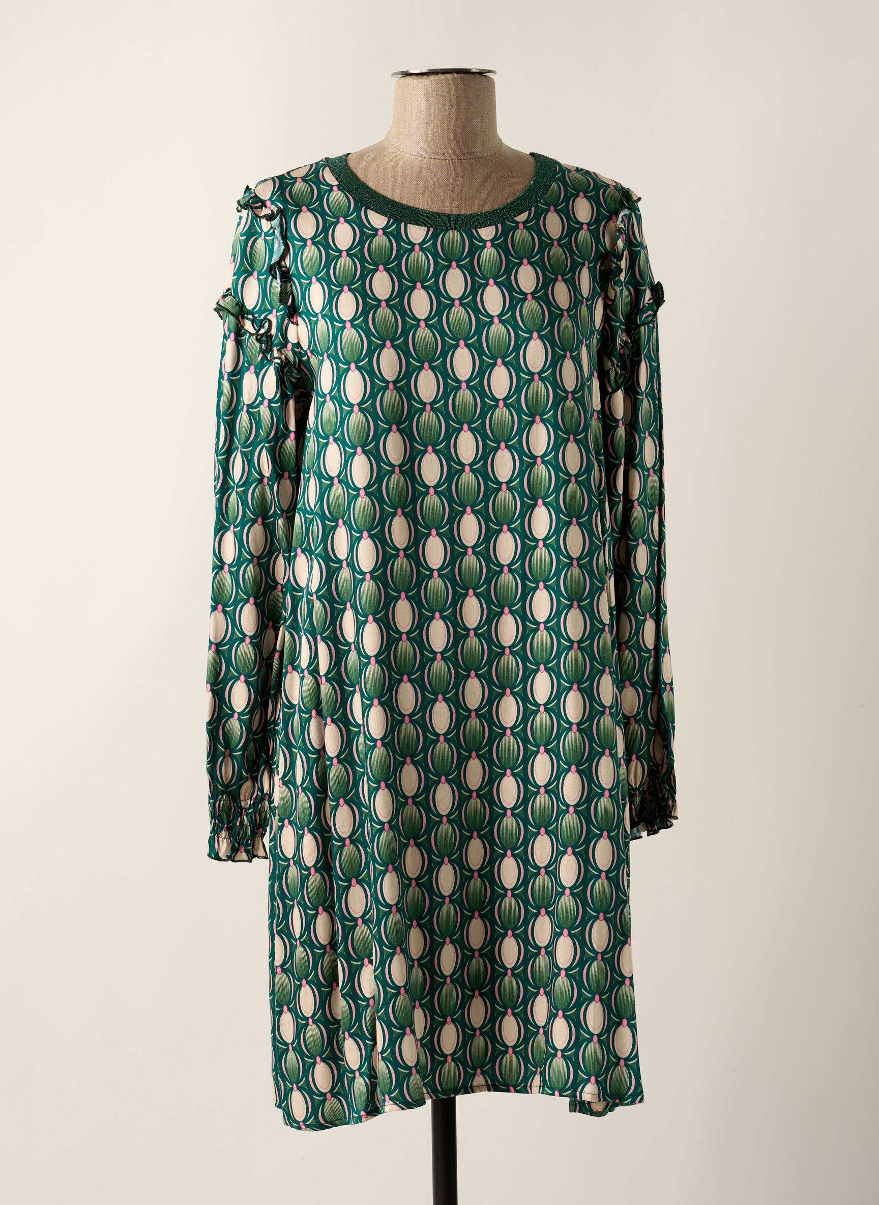 Rochie Midi Les Blondinettes Verde Mâneci Lungi