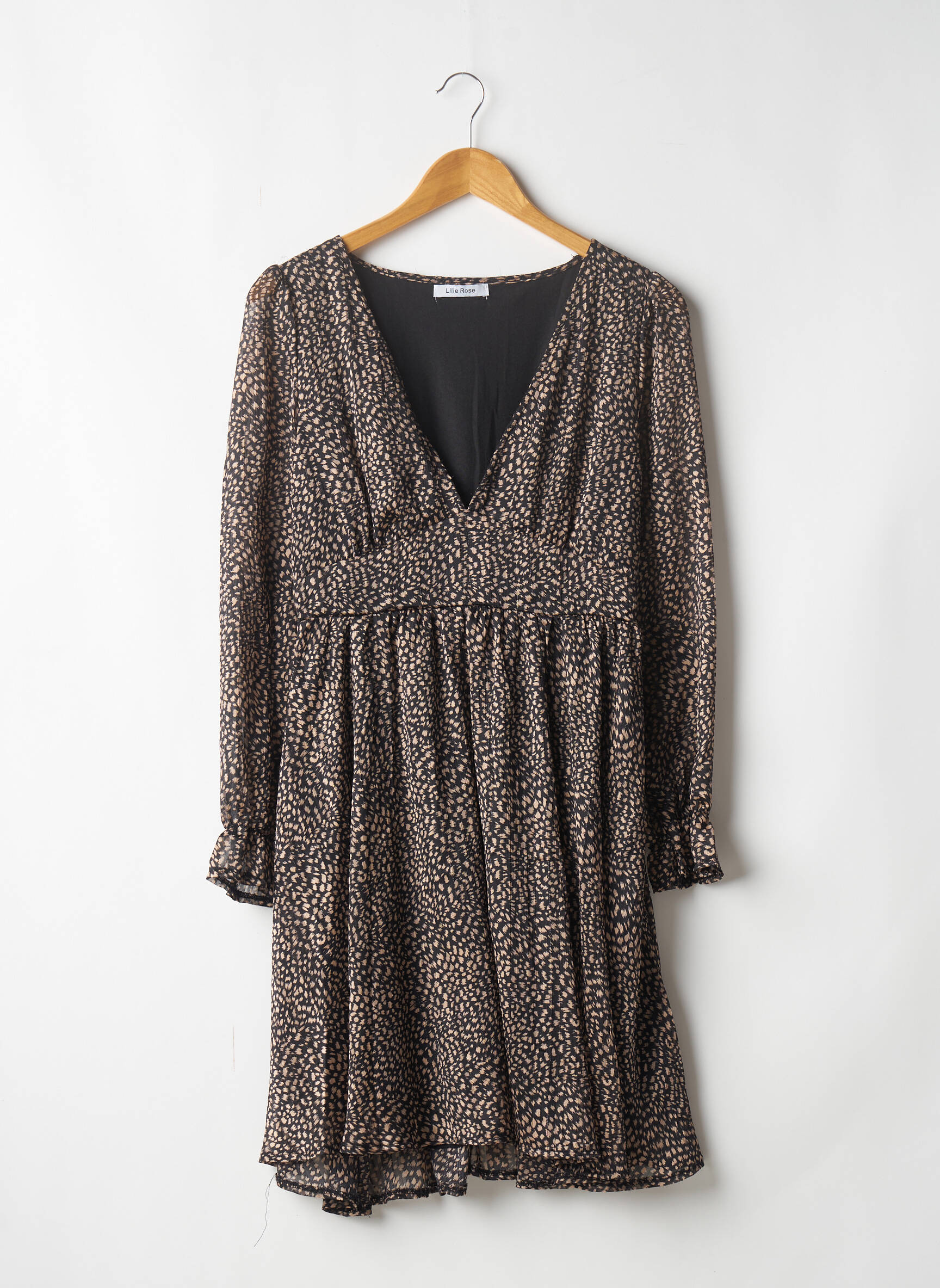 Rochie Midi Lilie Rose Negru Mâneci Lungi