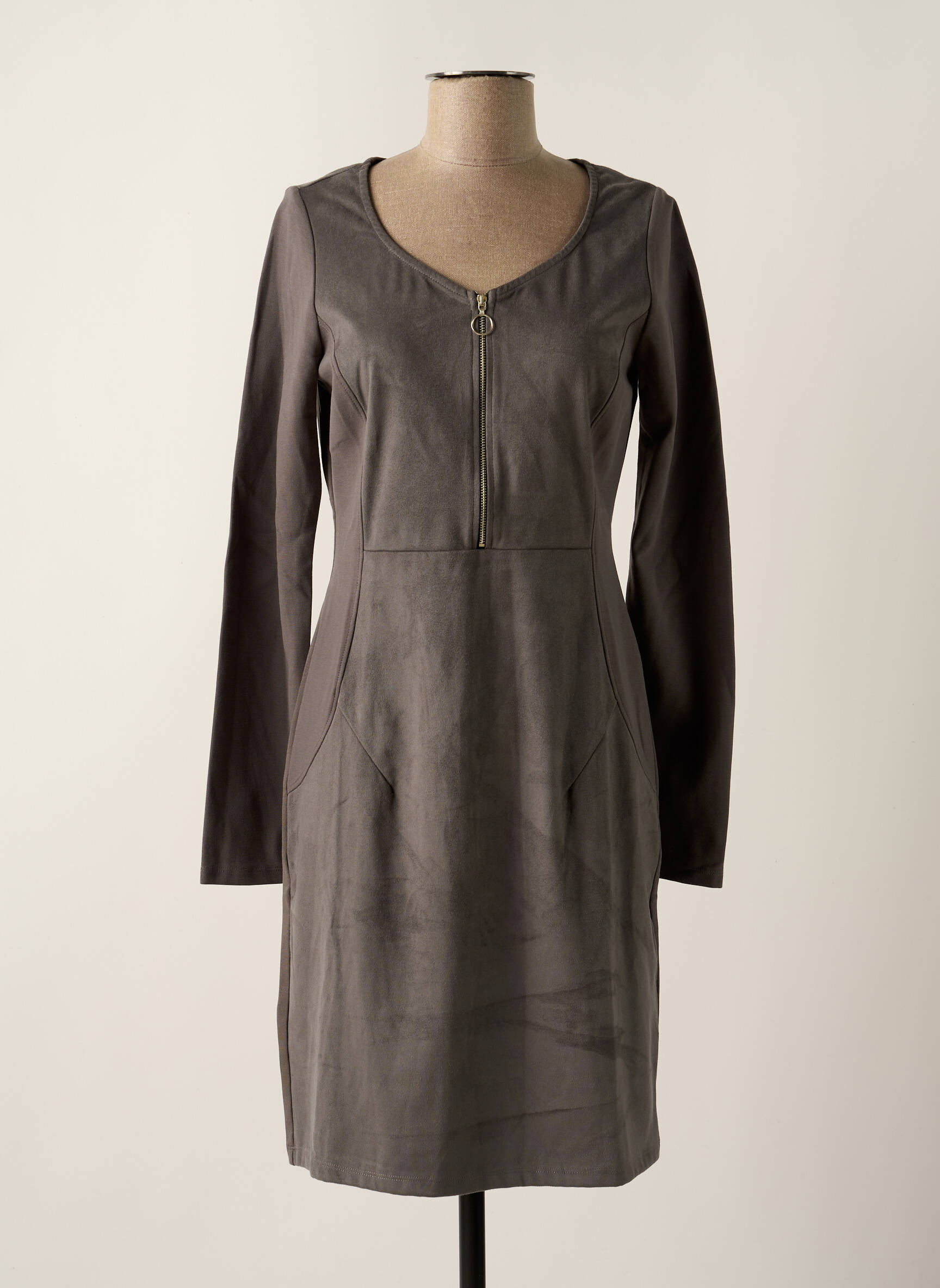 Rochie Midi Maloka Gri Mâneci Lungi