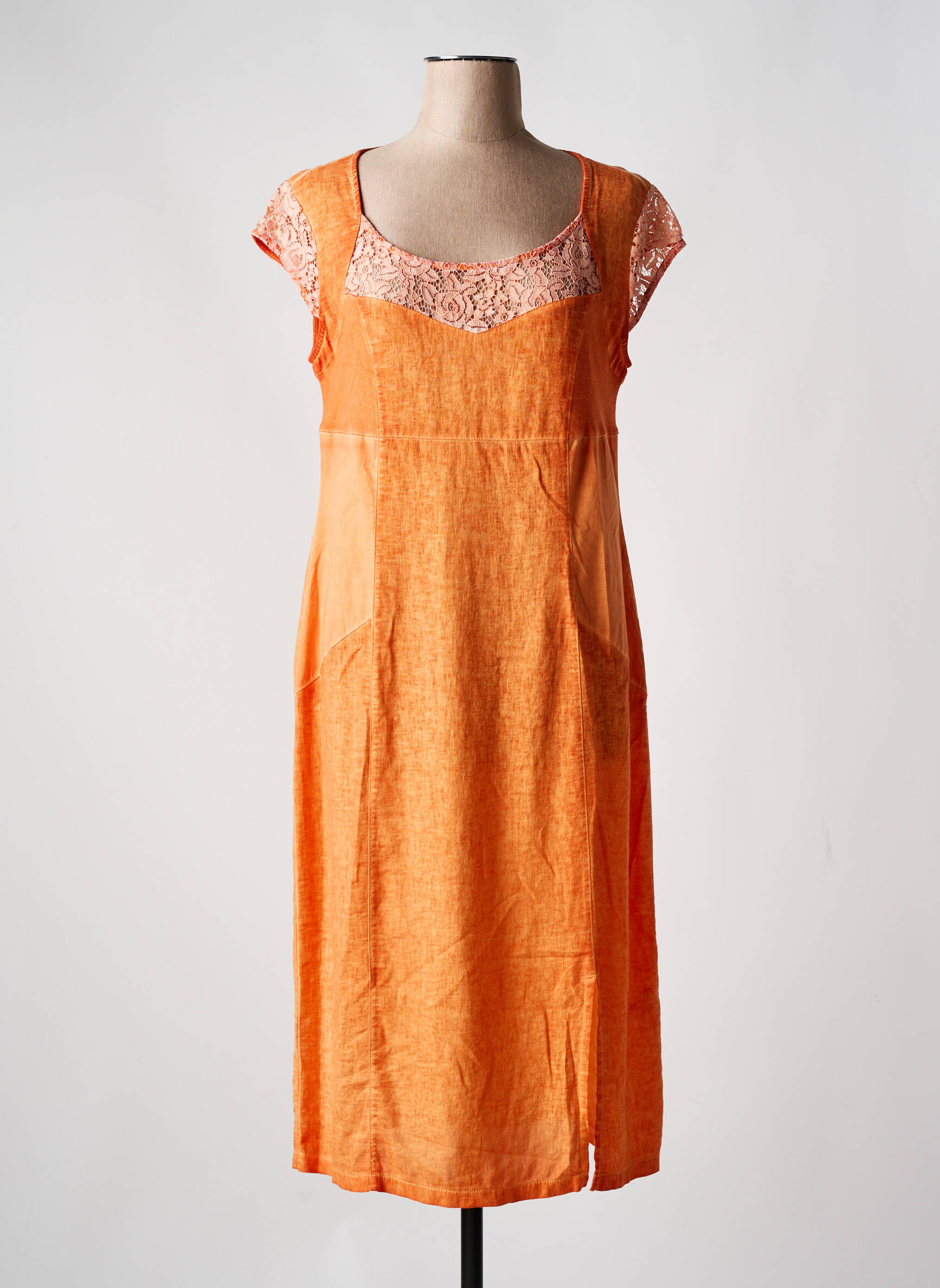 Rochie Midi Maloka Portocaliu Mâneci Scurte