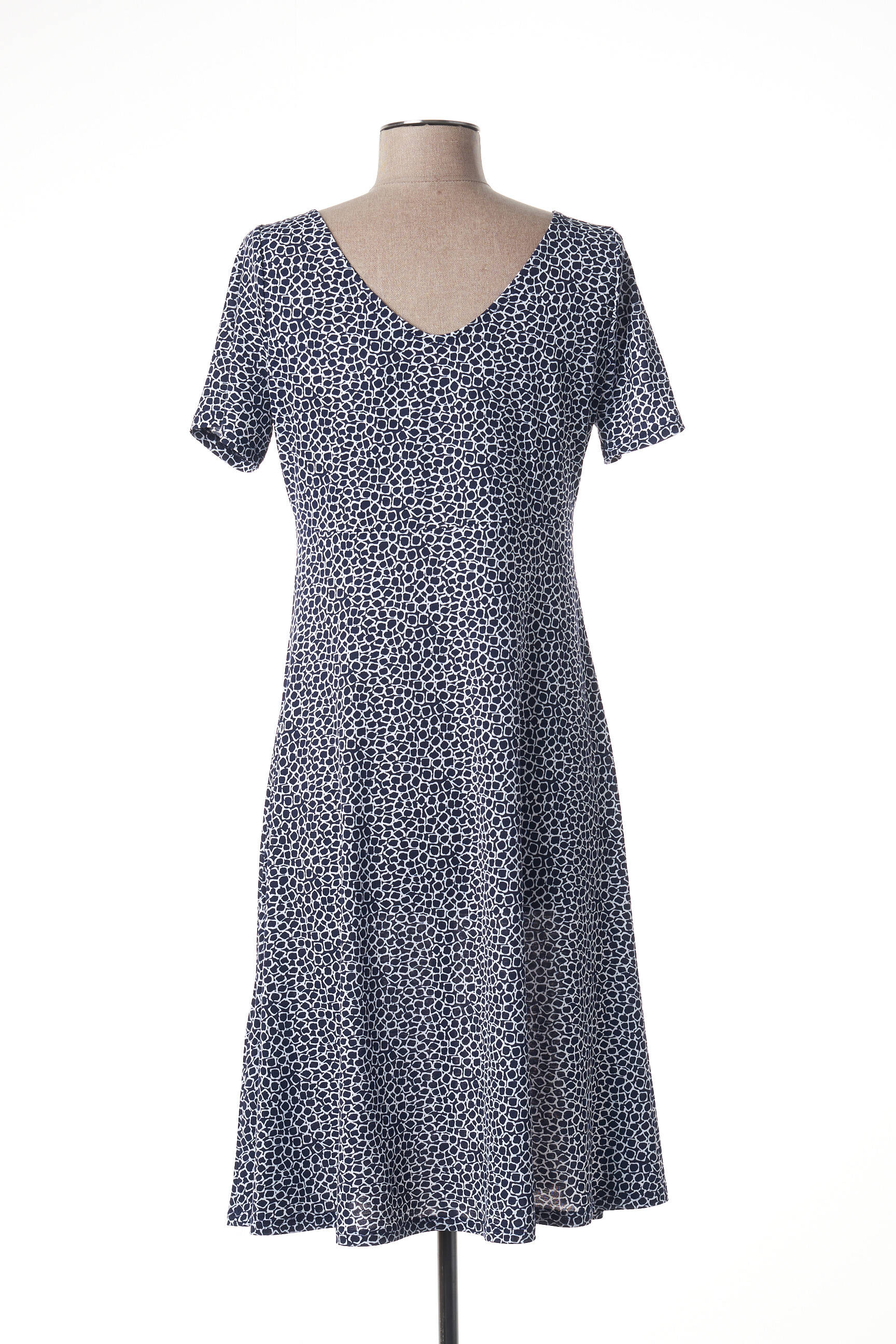 Rochie Midi Marble Albastru Mâneci Scurte